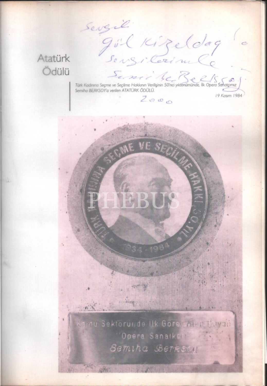 İthaf, "Sevgili Gül Kızıldağ´a sevgilerimle. Semiha Berksoy 2000" şeklindedir.