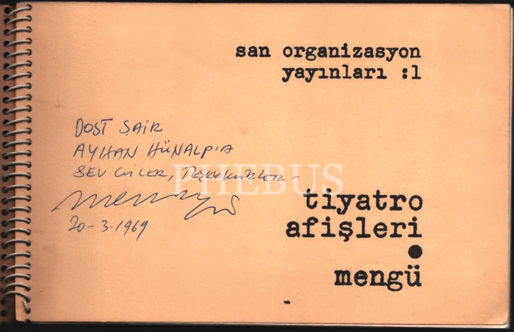 TİYATRO AFİŞLERİ, Mengü [Ertel]´den ithaflı ve imzalı, San Organizasyon Yayınları: 1, 1969, 46 sayfa, 22x15 cm