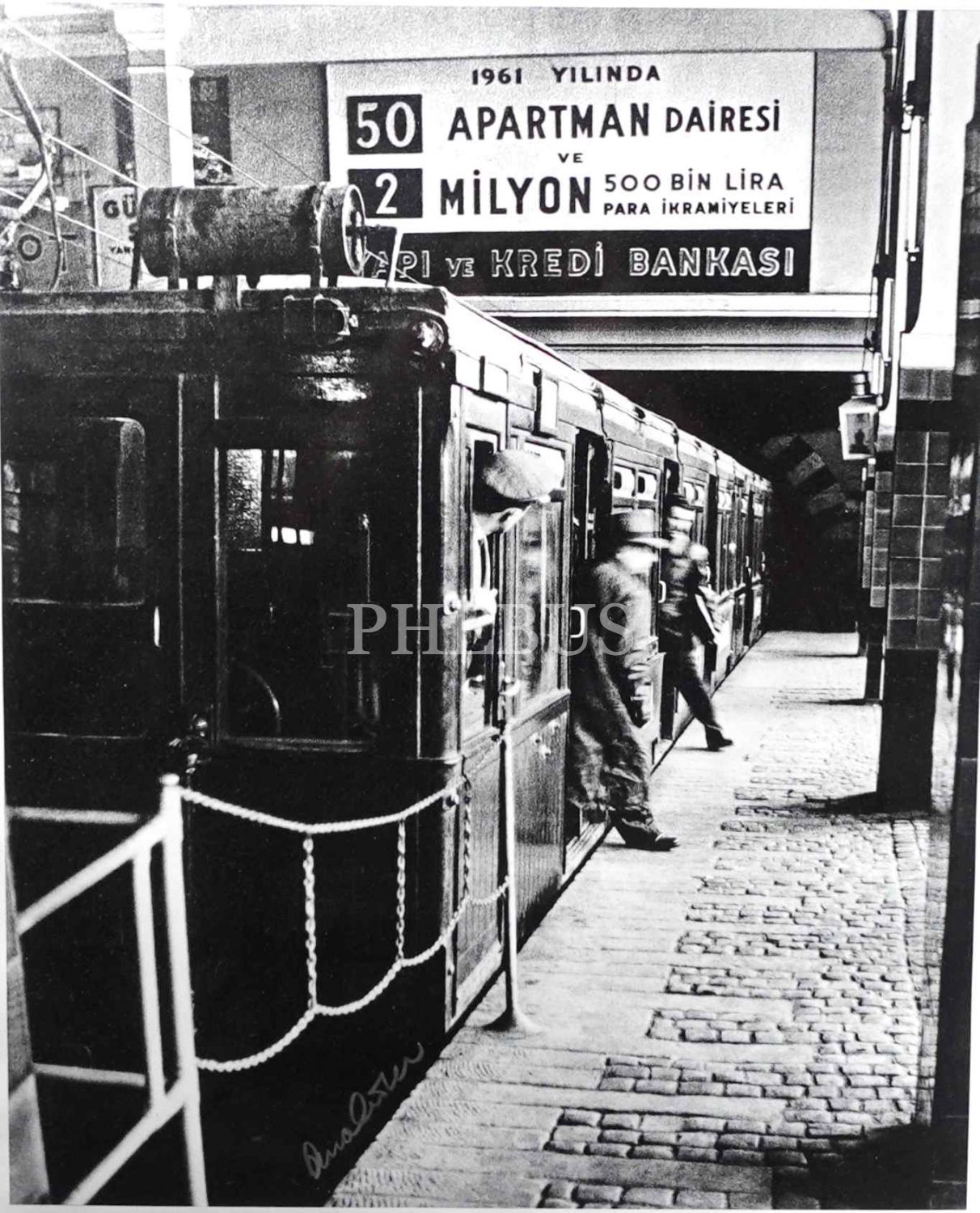 "Tünel - Beyoğlu, İstanbul 1960-61" Kabartma ve ıslak imzalı, arkası "Photographed by Ara Güler" kaşeli, fotoğraf, 40x50 cm