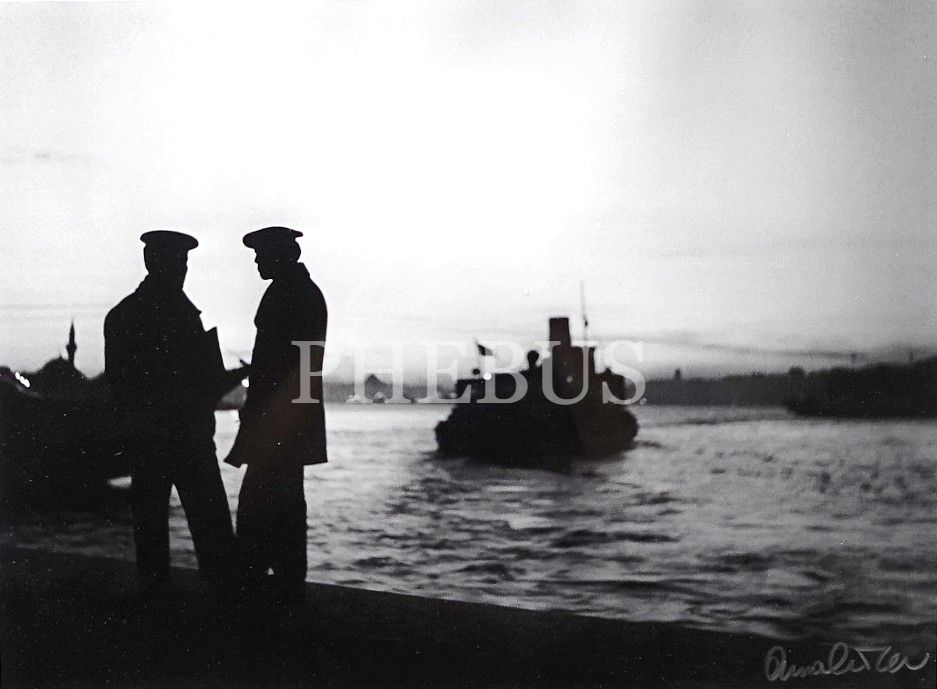 İstanbul'un kalbi, şehir hatları vapuru, "Balaban İskelesi, Üsküdar", Kabartma ve ıslak imzalı, arkası "Photographed by Ara Güler" kaşeli, fotoğraf, 44x32 cm