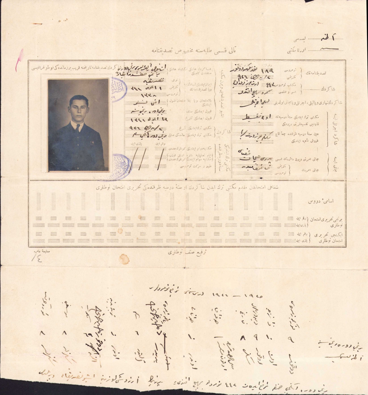 İstanbul Erkek Lisesine ait tasdikname, 1926 tarihli Osmanlıca, fotoğraflı, 29x30 cm