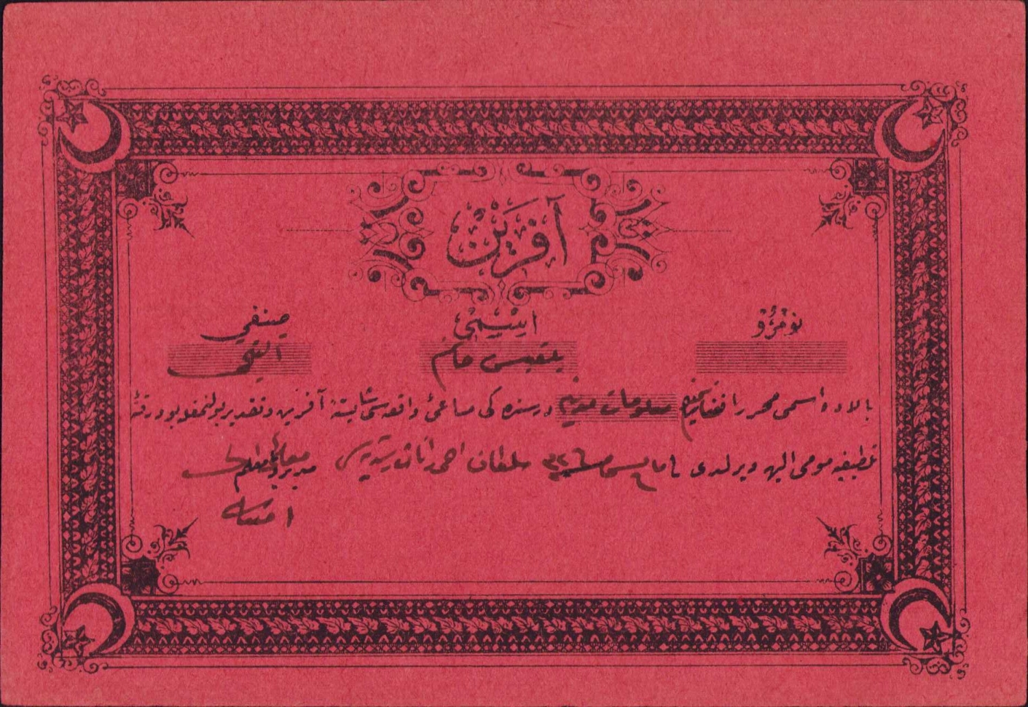 1326 tarihinde Belkıs Hanım'a malumat-ı medeniyye dersindeki gayretinden dolayı verilmiştir. 16x10 cm