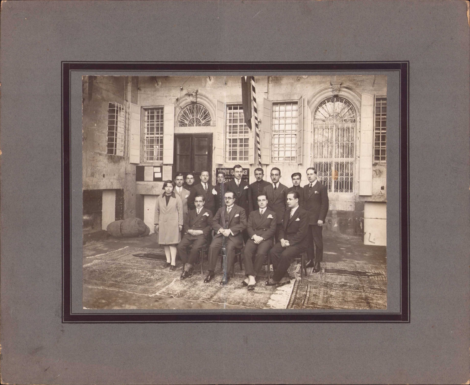 Türkiye İş Bankası müdür ve çalışanlar, büyük boy fotoğraf, 1920ler sonları, ortadan kırık, 23x33 cm