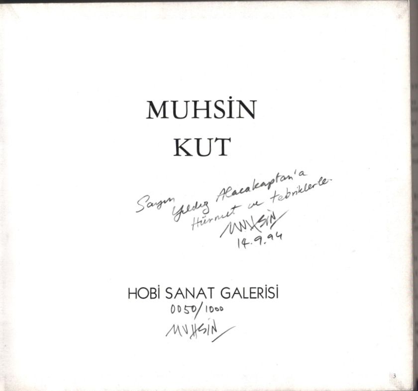 Muhsin Kut´tan Yıldız Alacakaptan´a ithaflı ve imzalı MUHSİN KUT, Hobi Sanat Galerisi, 1994, 144 sayfa, 24x23 cm, şömizi yorgun haliyle