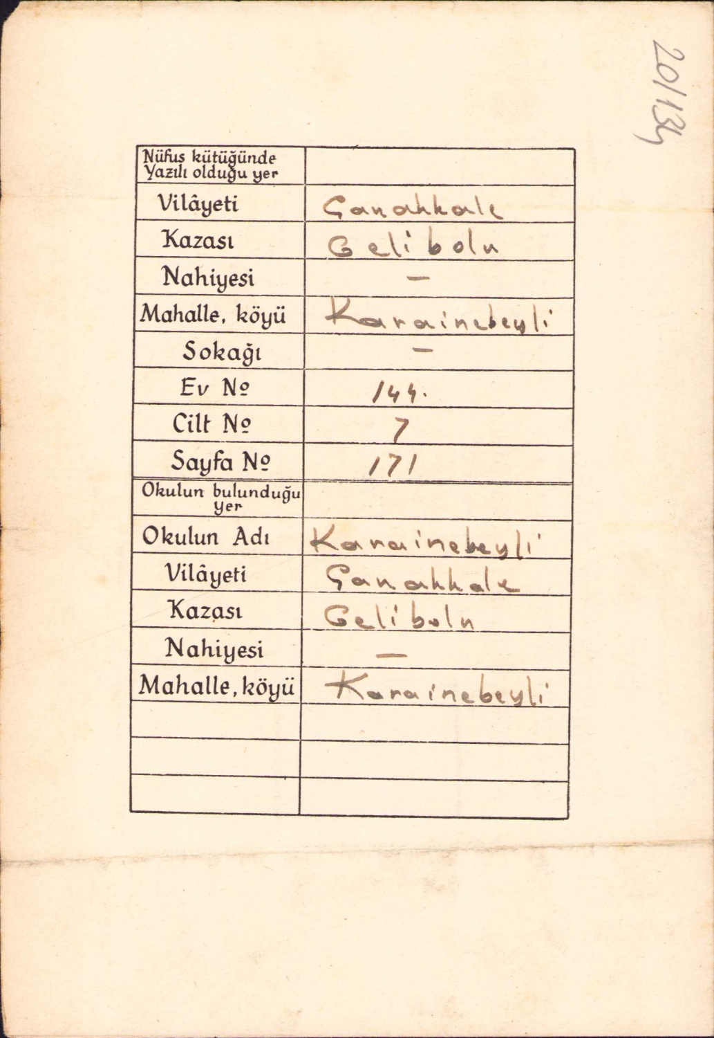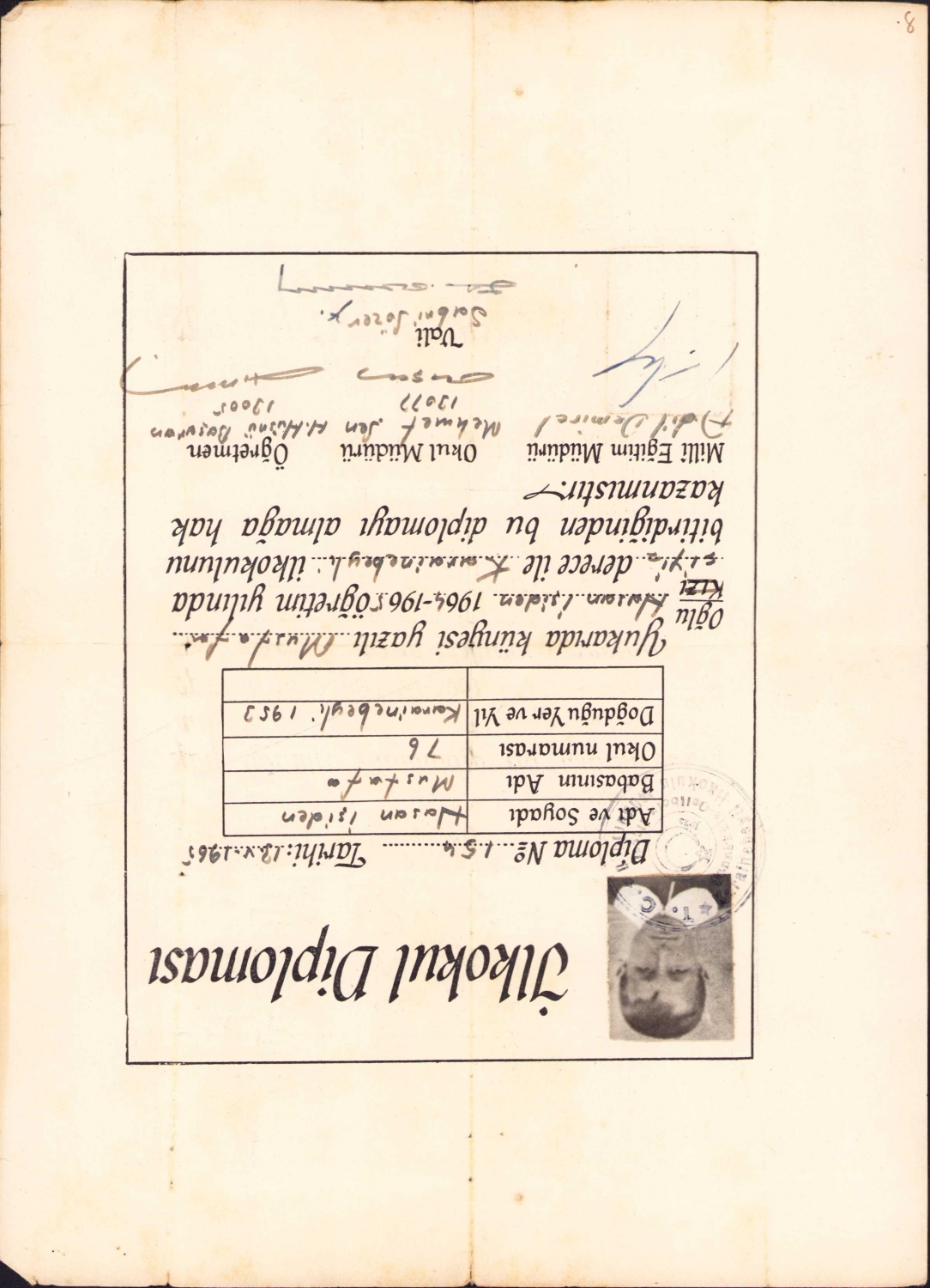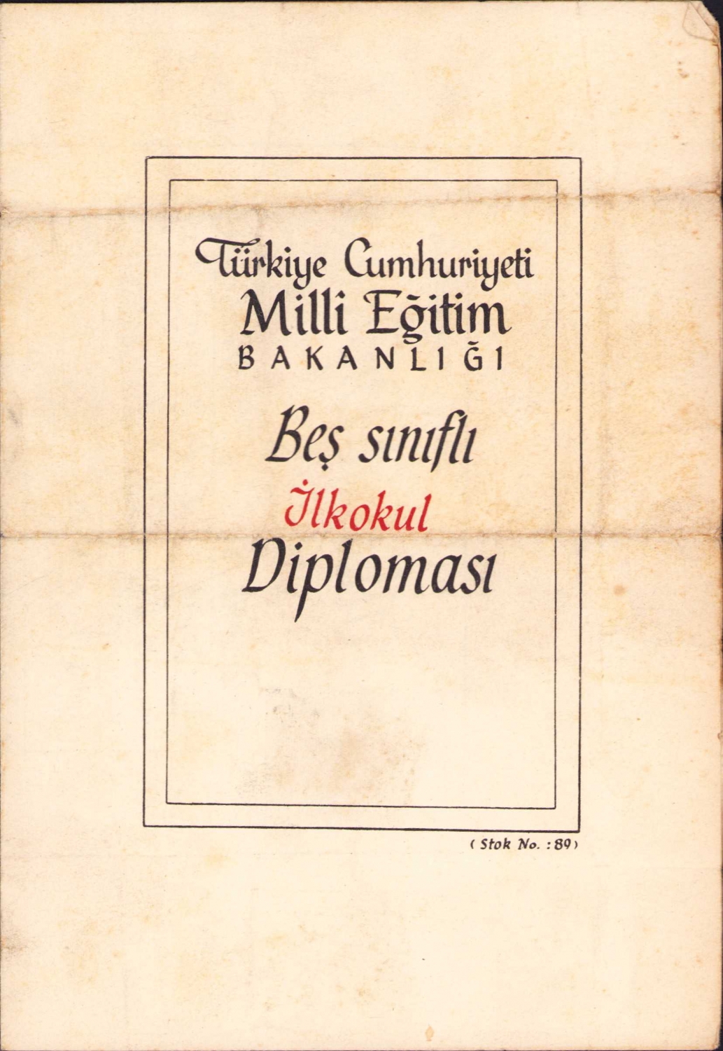 Beş sınıflı İlkokul Diploması, Çanakkale - Gelibolu Karainbeyli İlkokulu diploması, 1965, 14x20 cm