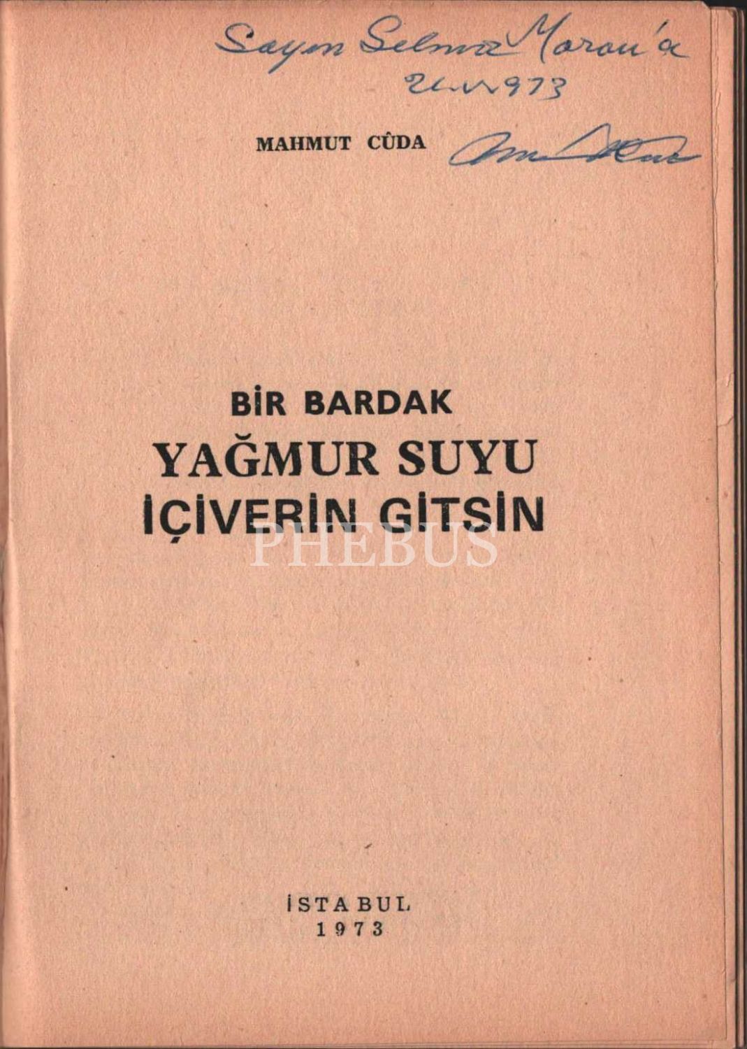 BİR BARDAK YAĞMUR SUYU İÇİVERİN GİTSİN, Mahmut Cûda´dan ithaflı ve imzalı, Yaylacık Matbaası, İstanbul - 1973, 48 sayfa, 14x20 cm