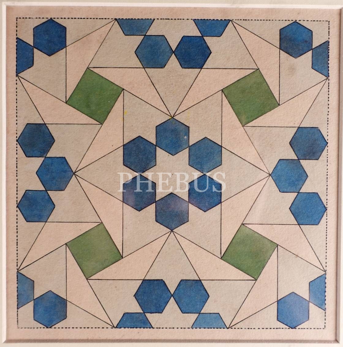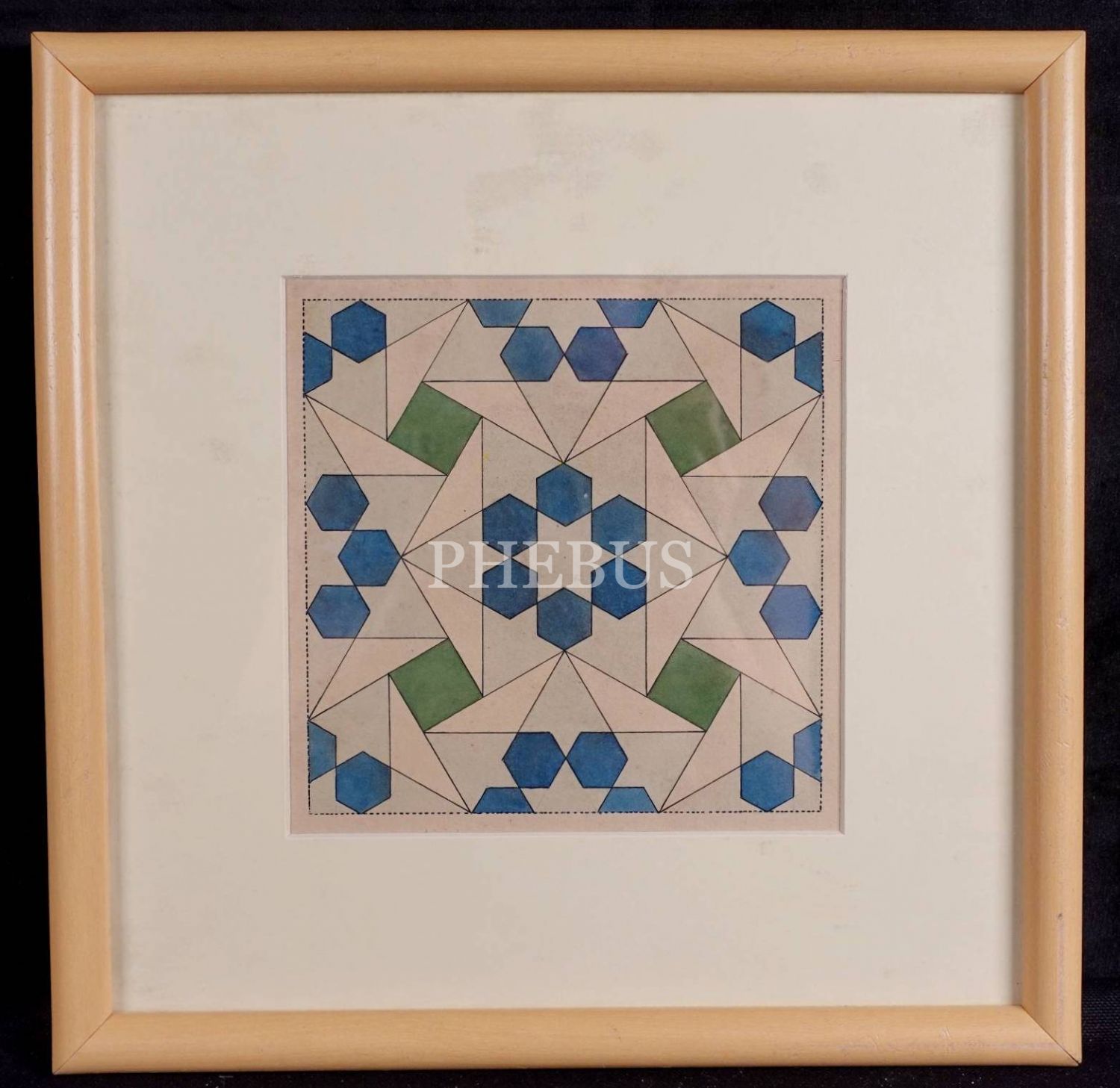 İmzasız geometrik kompozisyon, çerçevesiyle birlikte 25x25 cm