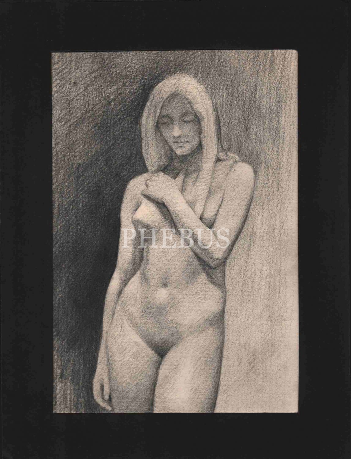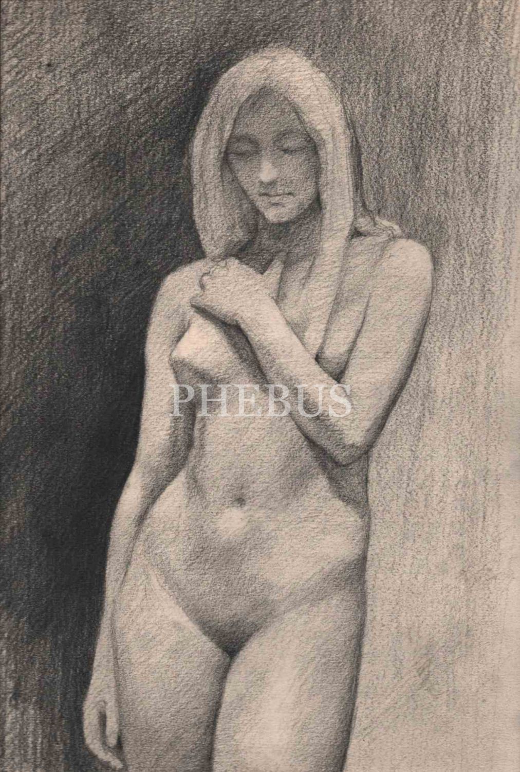 Halil [Gören] çizimi, kağıt üzerine karakalem nü çalışma, paspartusuyla birlikte 24x32 cm, imzasız