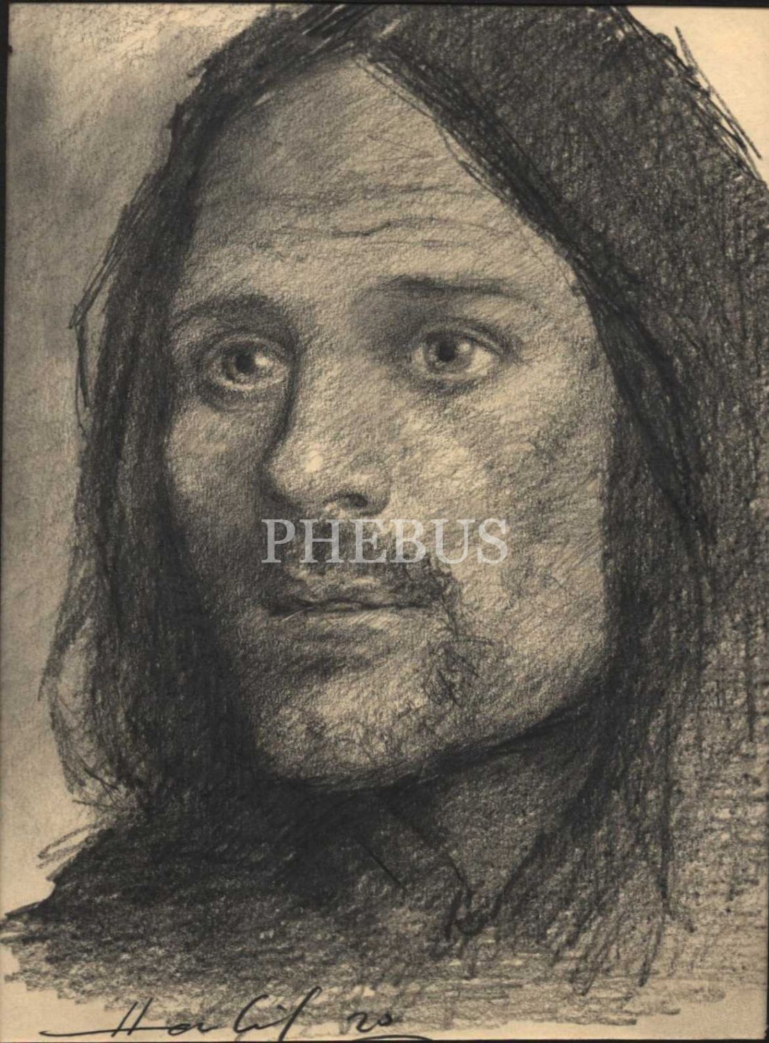 Halil [Gören] imzalı, 2020 tarihli kağıt üzerine karakalem portre, paspartusuyla birlikte 21x26 cm
