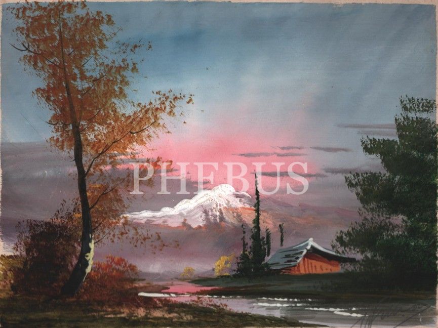 M...F... [İmza okunamadı]´den karton üzerine suluboya manzara, 32x25 cm