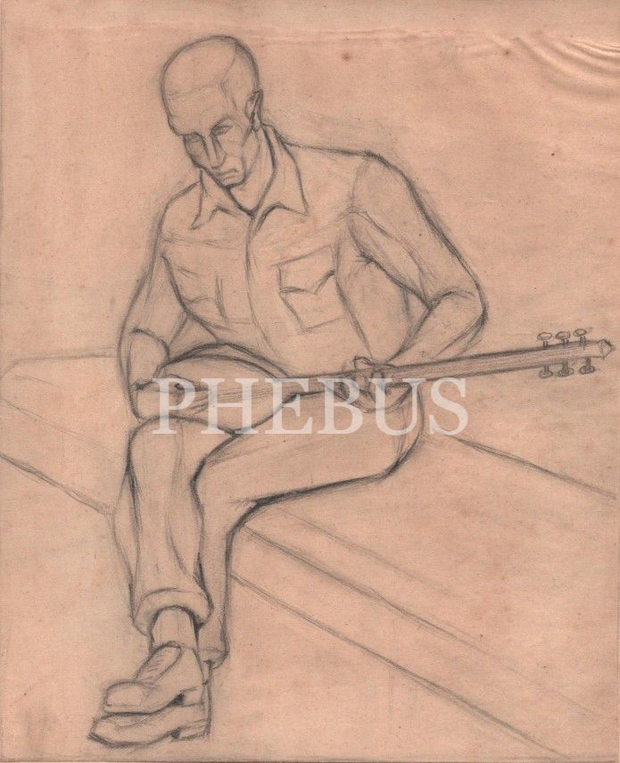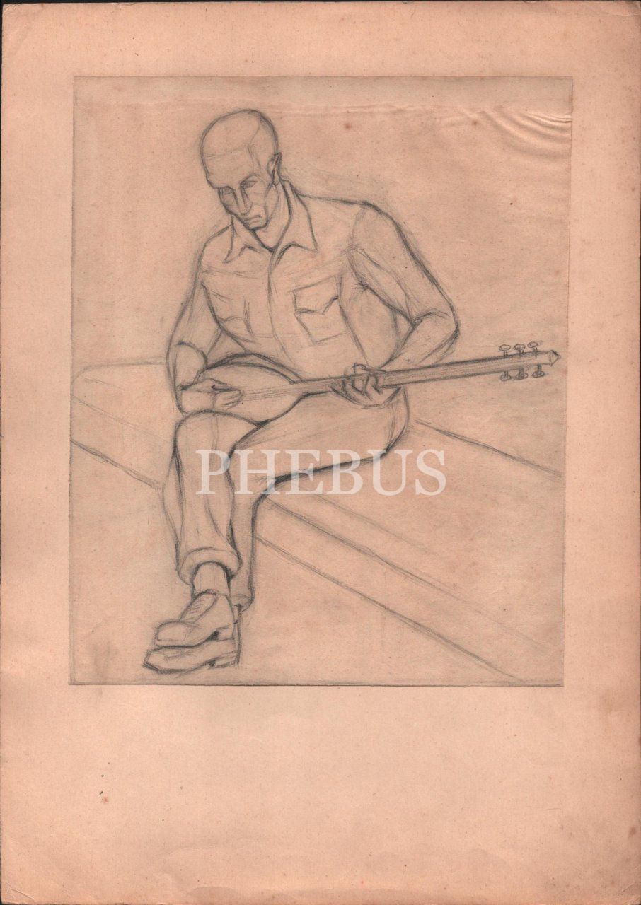 Altan Enson´dan kağıt üzerine karakelem aşık çizimi, 19x23 cm