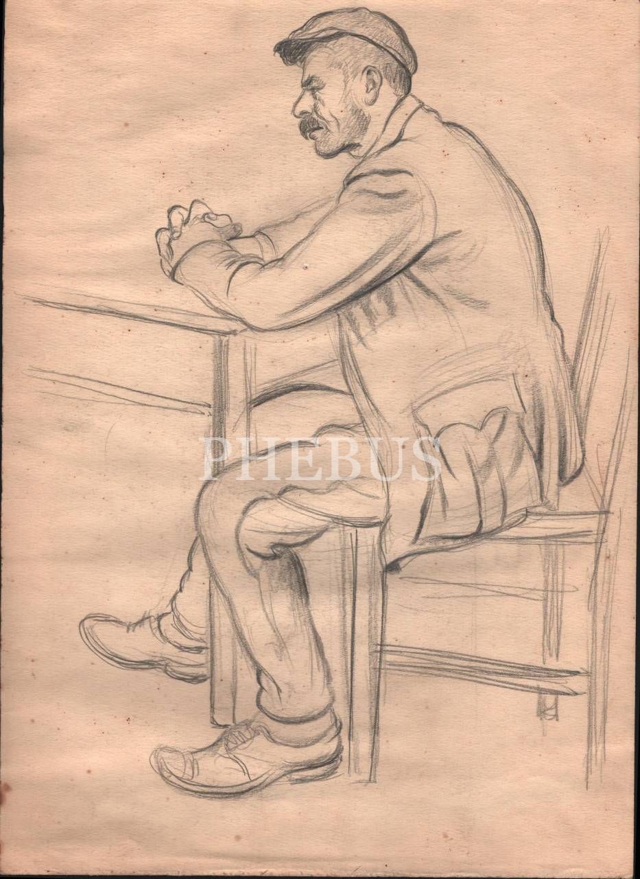 Şeref Akdik´ten kağıt üzerine karakalem köylü figür çizimi, 27x38 cm, imzasız