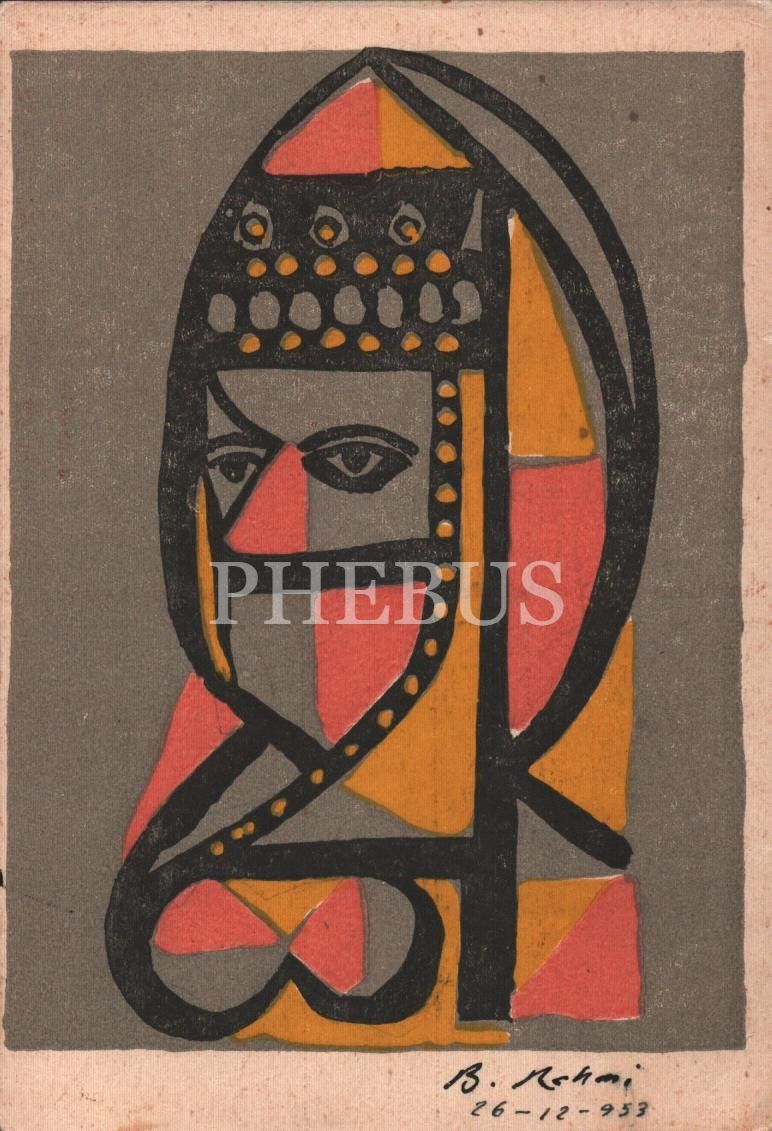 Bedri Rahmi Eyüboğlu´ndan ıslak imzalı "Köylü Paysanne" kartpostalı, 10x14 cm