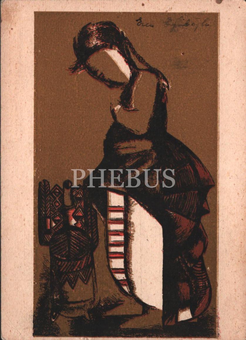 Eren Eyüboğlu´ndan ıslak imzalı "Köylü Kız" kartpostalı, 10x14 cm