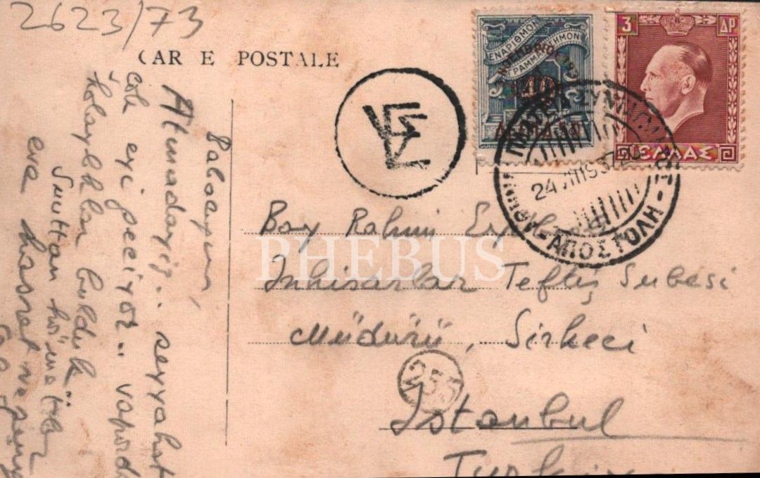 Bedri Rahmi Eyüboğlu´na Atina´dan gönderilmiş bir kartpostal, 14x10 cm
