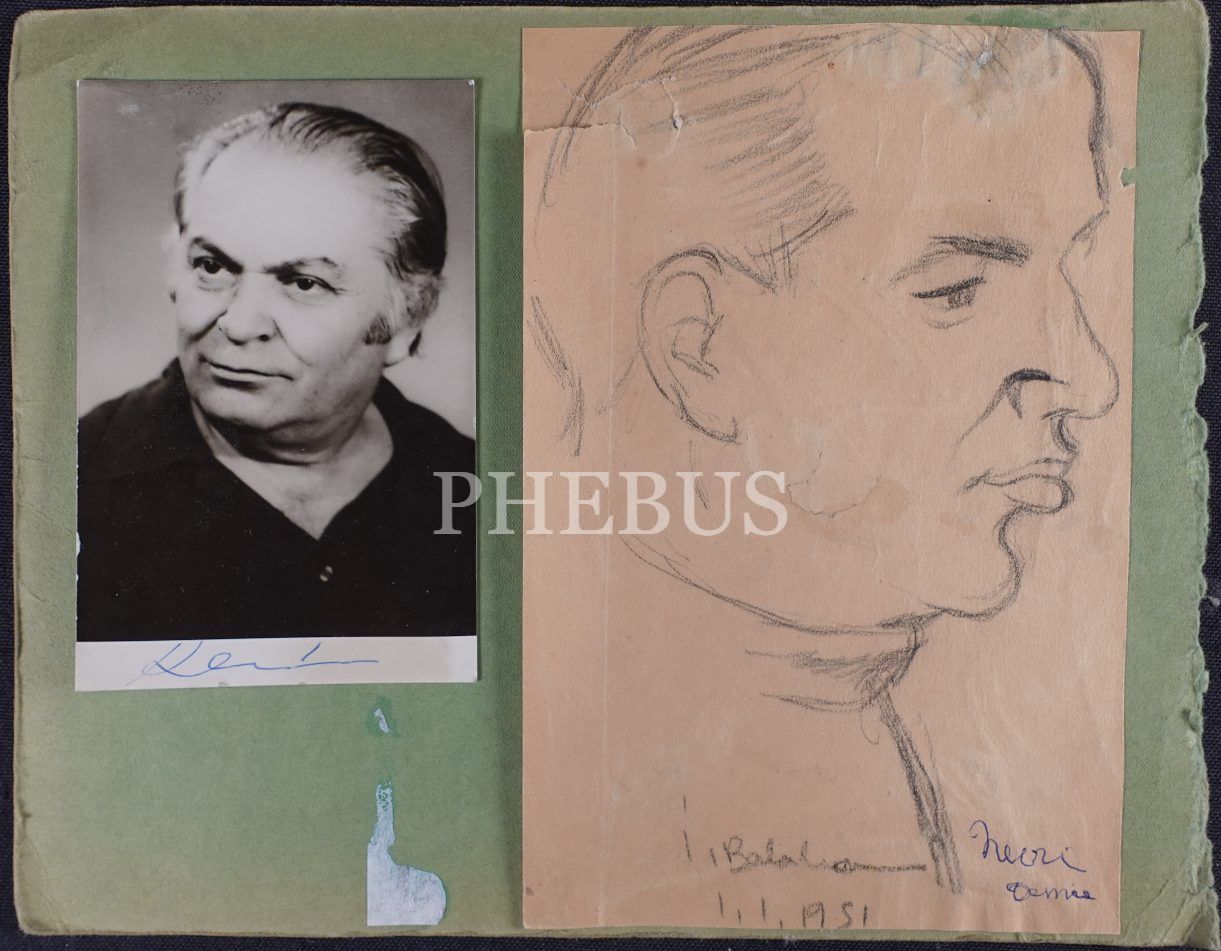 İbrahim Balaban´dan ıslak imzalı, 1951 tarihli portre çalışması ve çalışmasına ilham olan stüdyo fotoğrafı, 27x22 cm