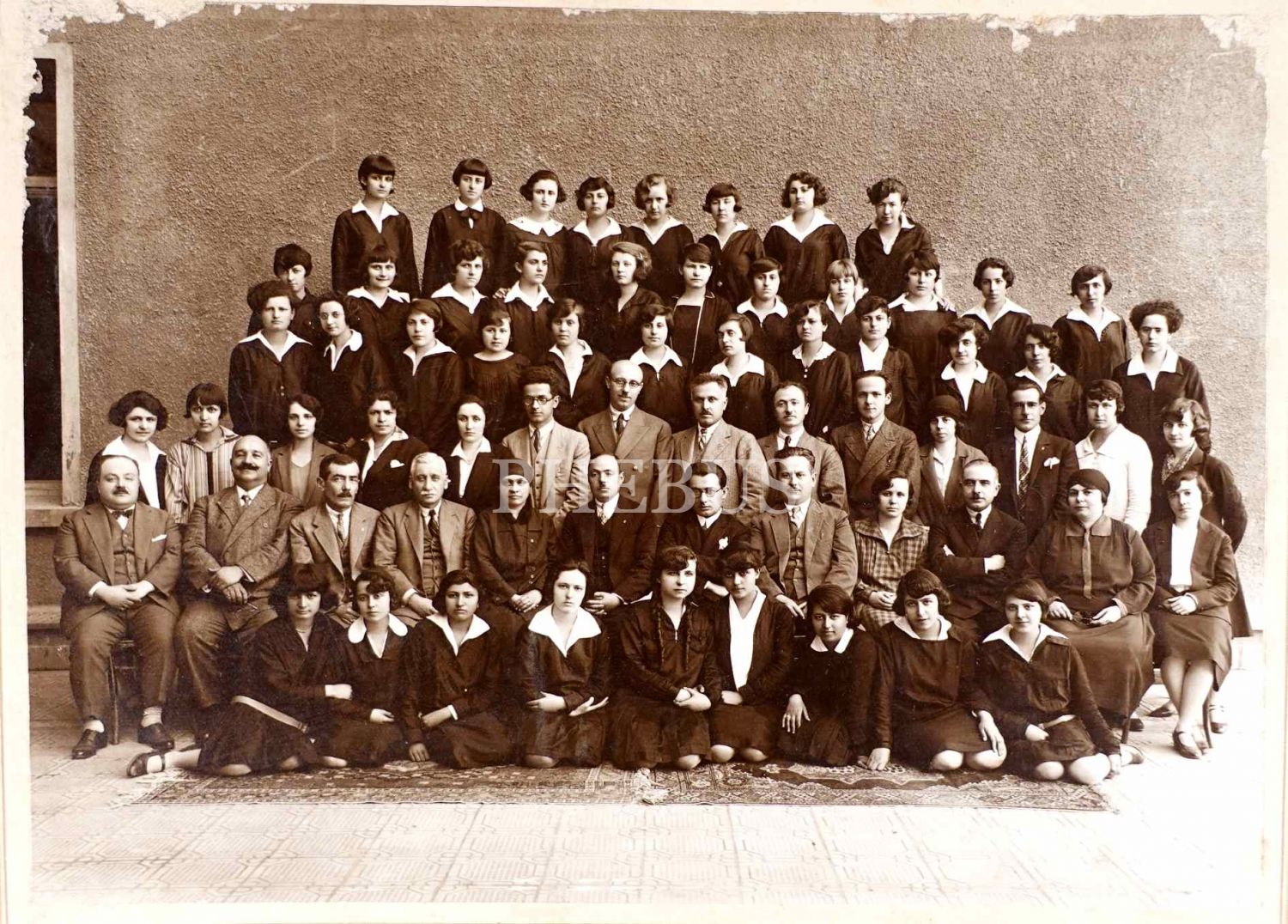 Şevket Dağ´ın resim öğretmeni olarak yer aldığı Kadıköy Kız Muallim Okulu toplu hatıra fotoğrafı, 34x28 cm