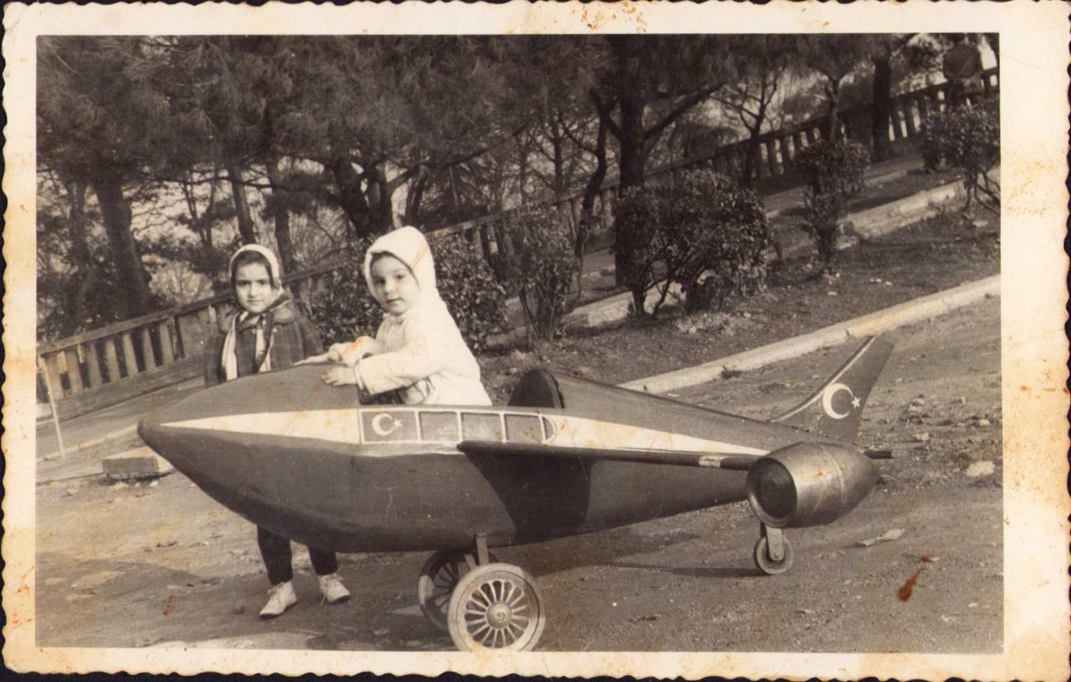 Türk bayraklı oyuncak tayyare içinde çocuk
