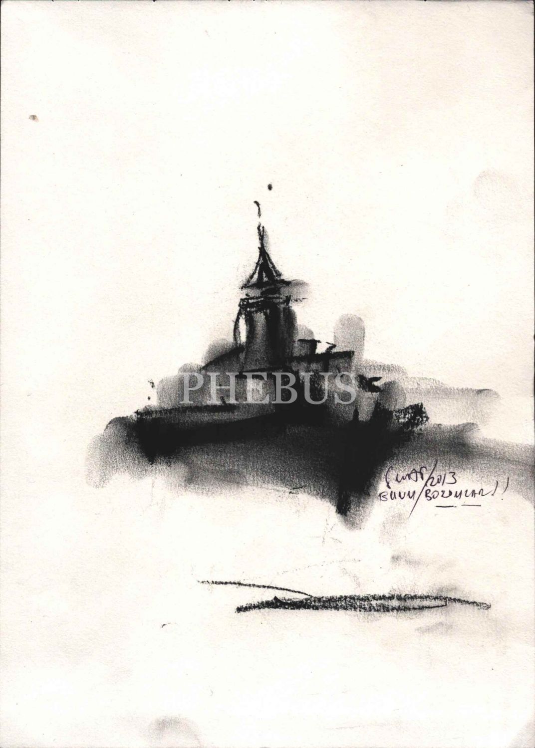 Suat imzalı, 2013 tarihli kağıt üzerine pastel Kız Kulesi çizimi, 21x29 cm