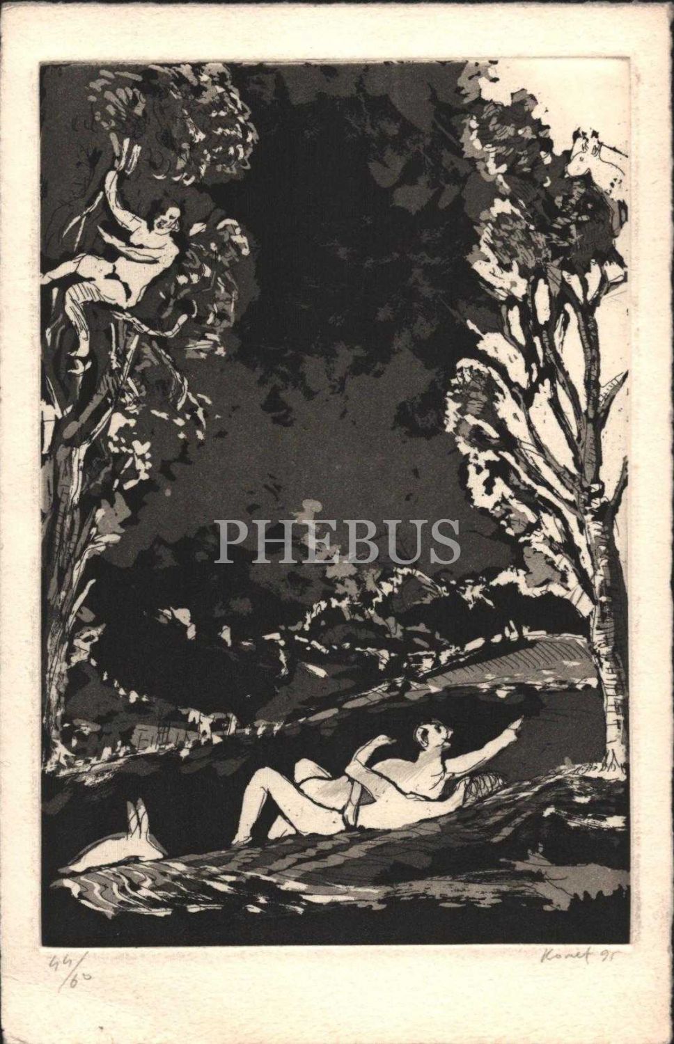 Komet´ten imzalı, 1995 tarihli, 44/60 numaralı gravür eser, 14x21 cm