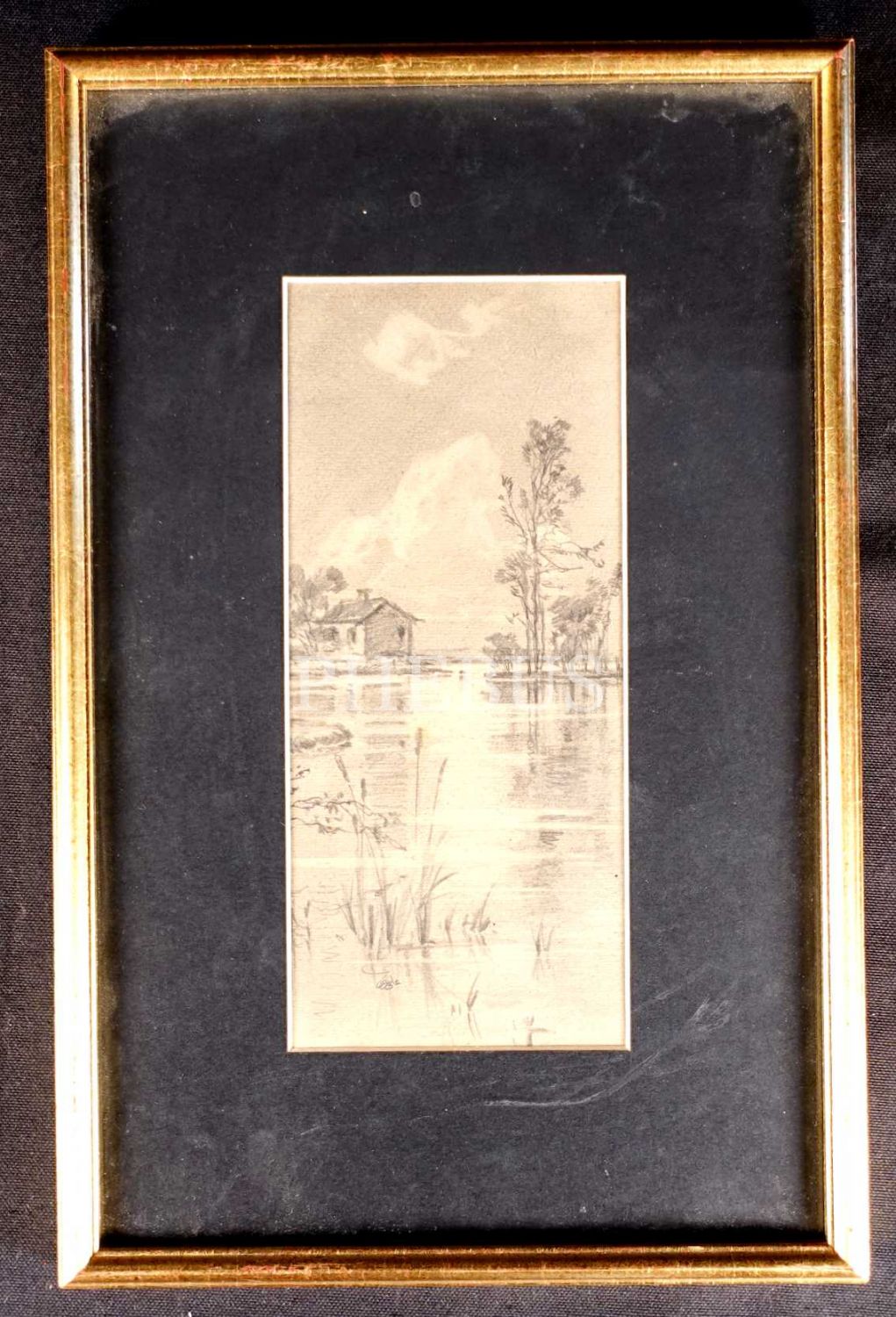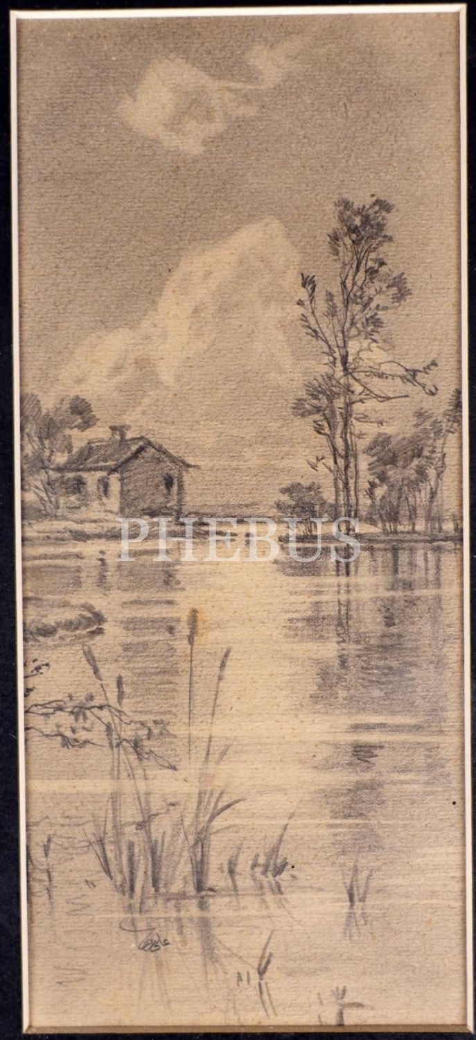 Karakalem manzara çizimi, imzalı, çerçevesiyle birlikte 22x34 cm