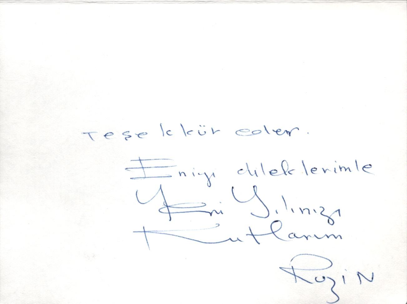 Ruzin Gerçin´in kendi resminden oluşturulan imzalı tebrik kartı