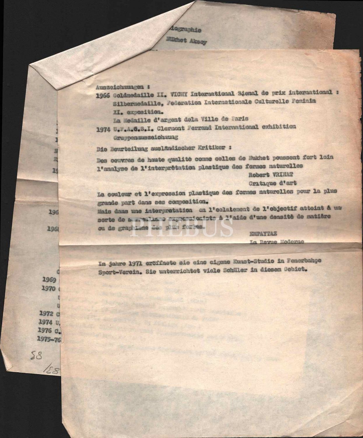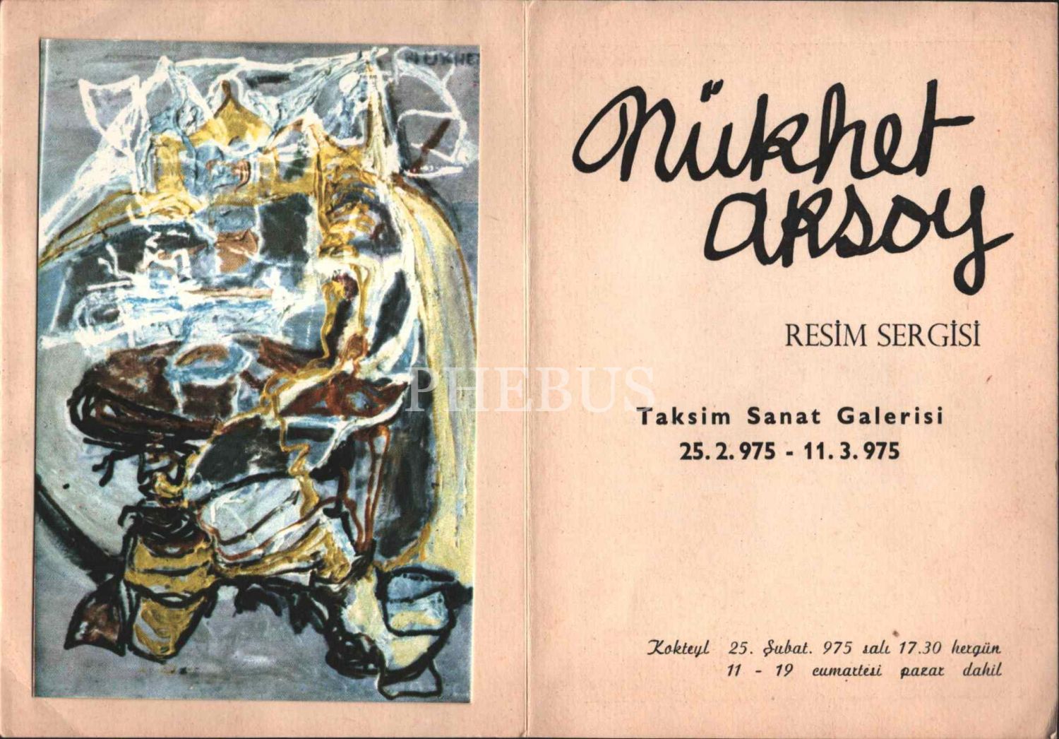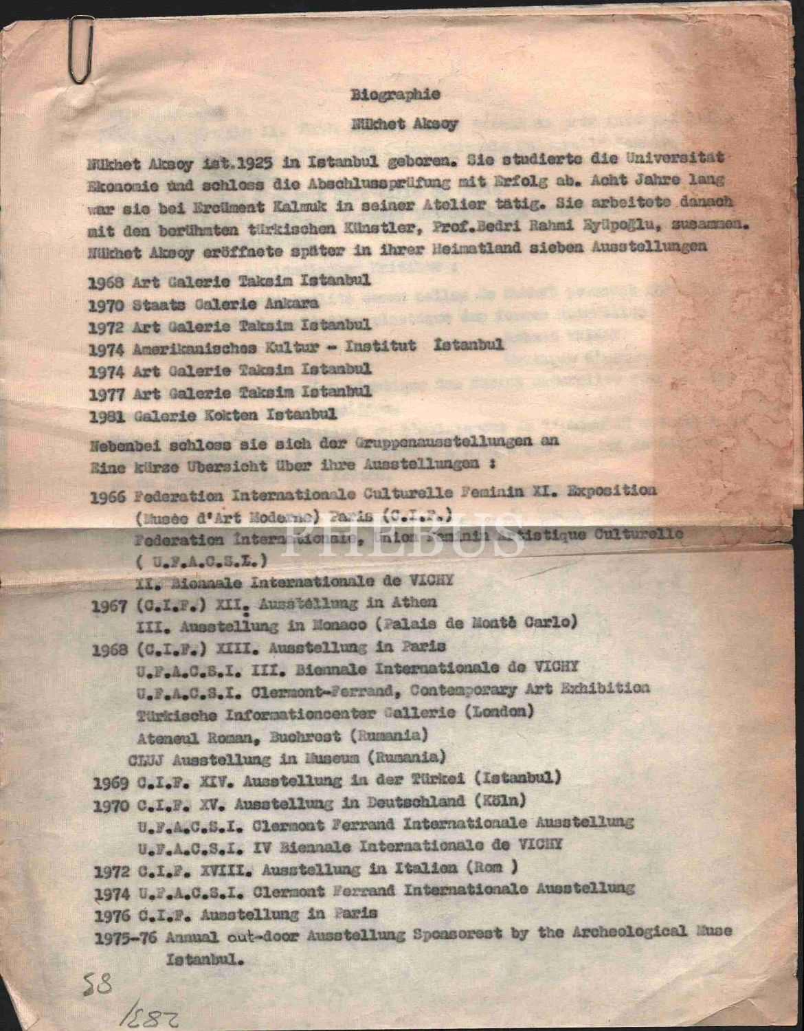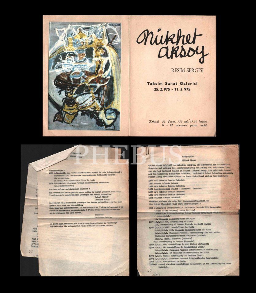 Nüzhet Aksoy´un 1975 tarihli sergi davetiyesi ve 2 sayfalık daktilo biyografisi