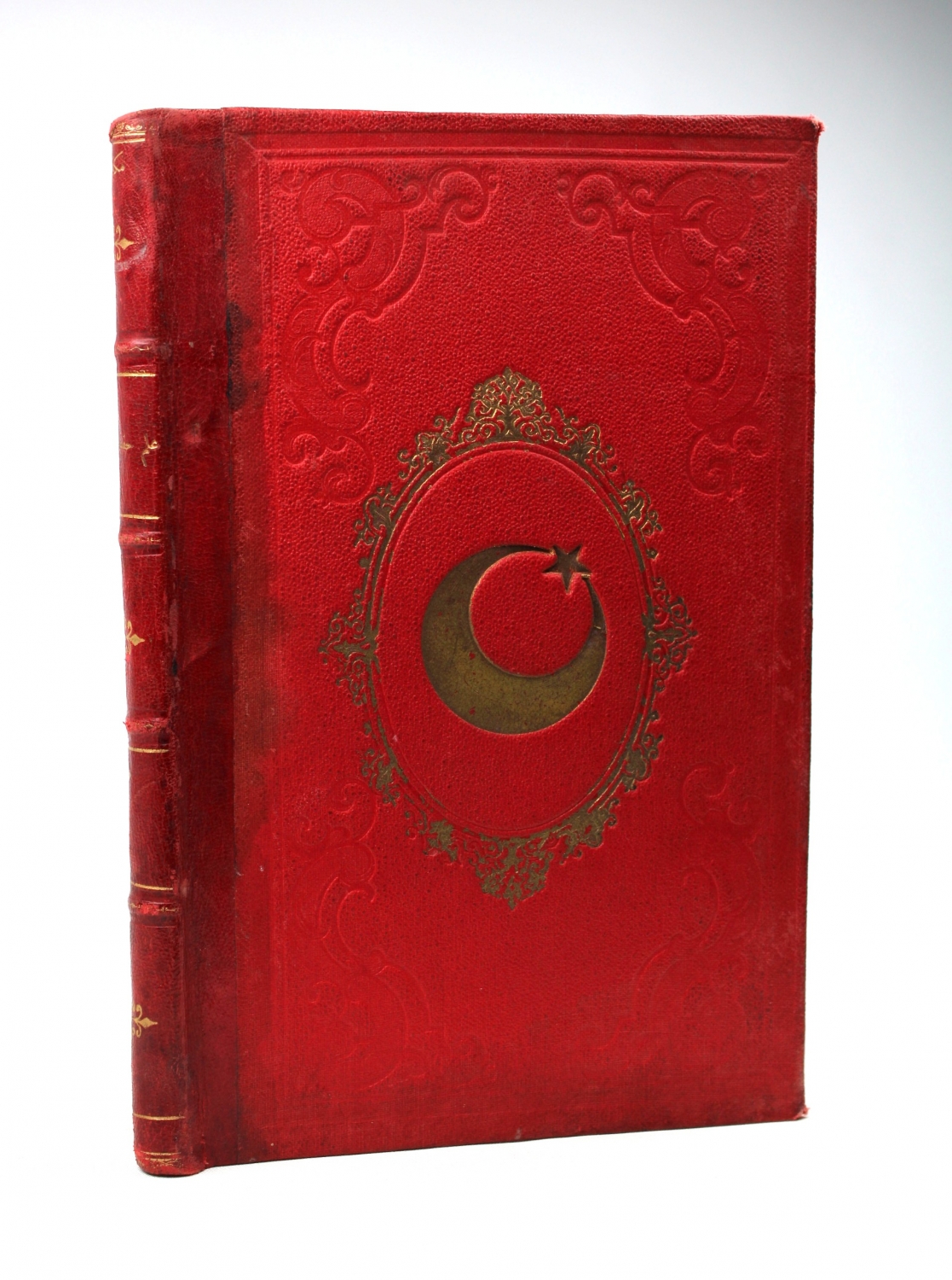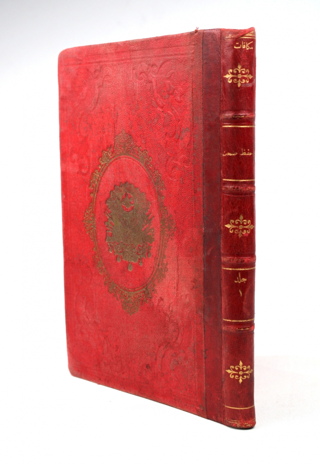Osmanlı devlet armalı ve ay yıldız görselli, sırtı Osmanlıca "Mükafat" yazılı cilt,16x24 cm