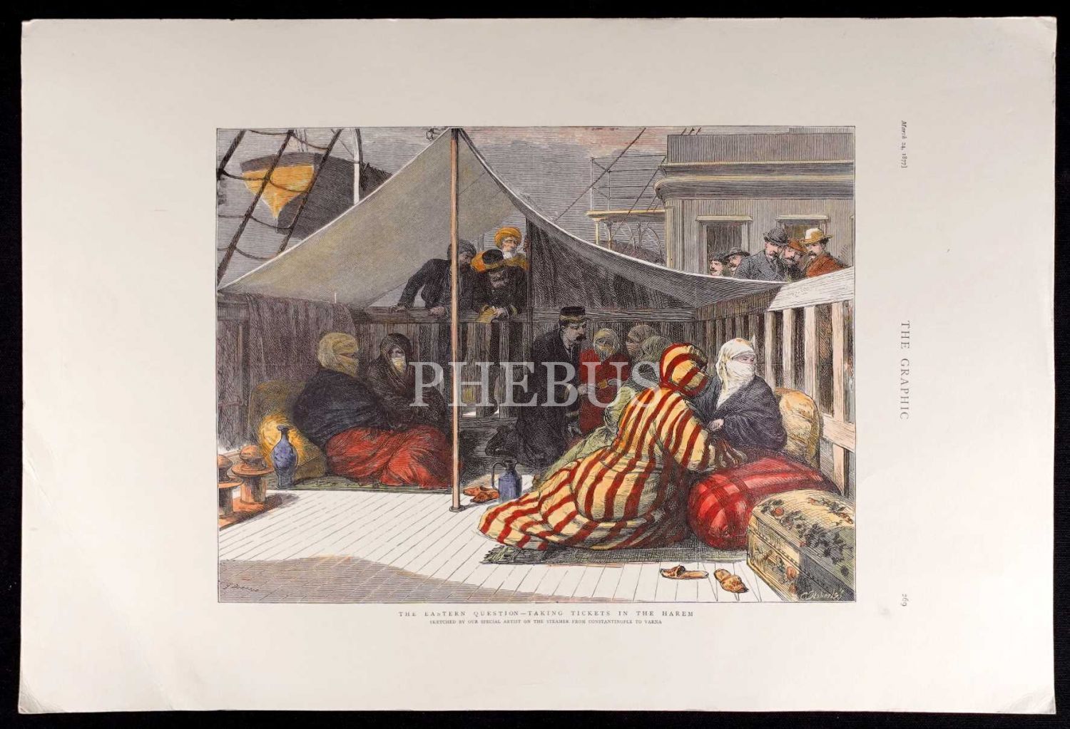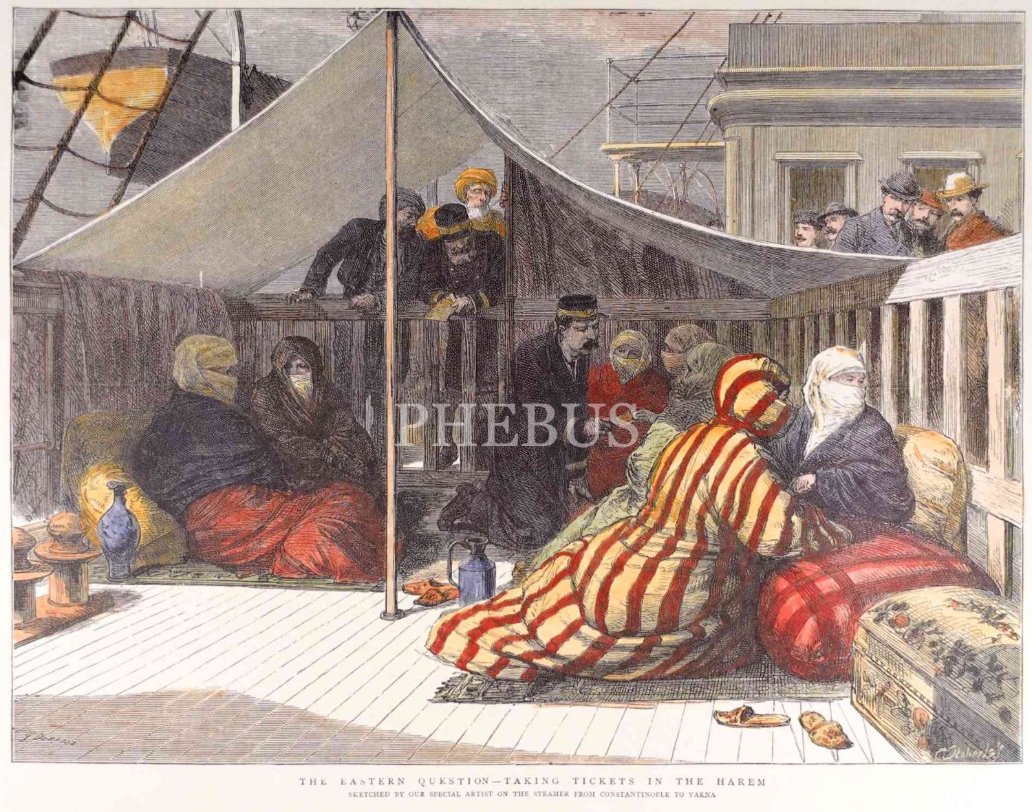 Varna Vapurunda Türk Kadınları, renklendirilmiş gravürden tıpkı basım, 49x33 cm