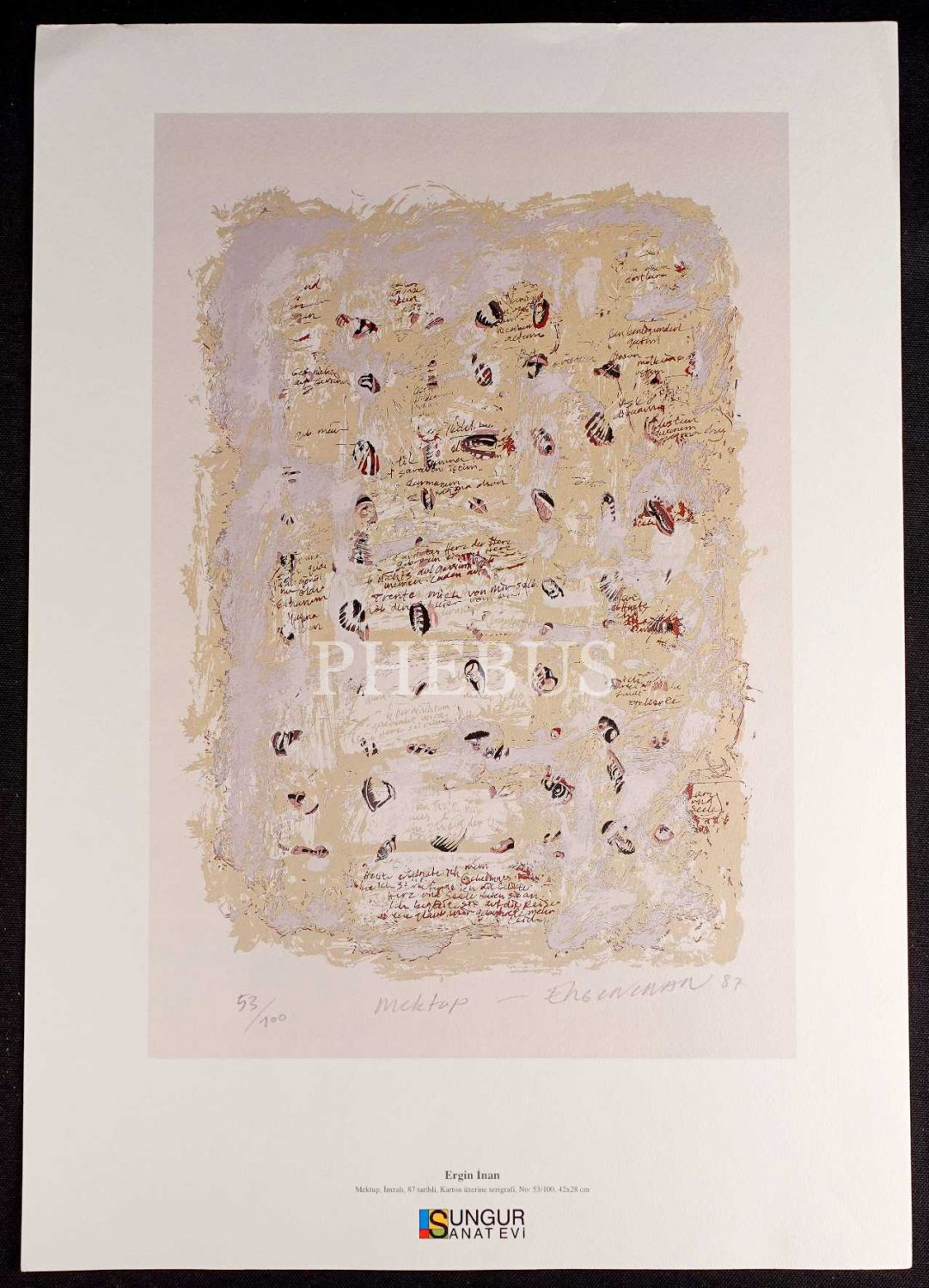 "Mektup", Ergin İnan´ın 1987 tarihli serigrafi eserinin Sungur Sanat Evi tarafından yapılmış özel baskısı, 32x45 cm