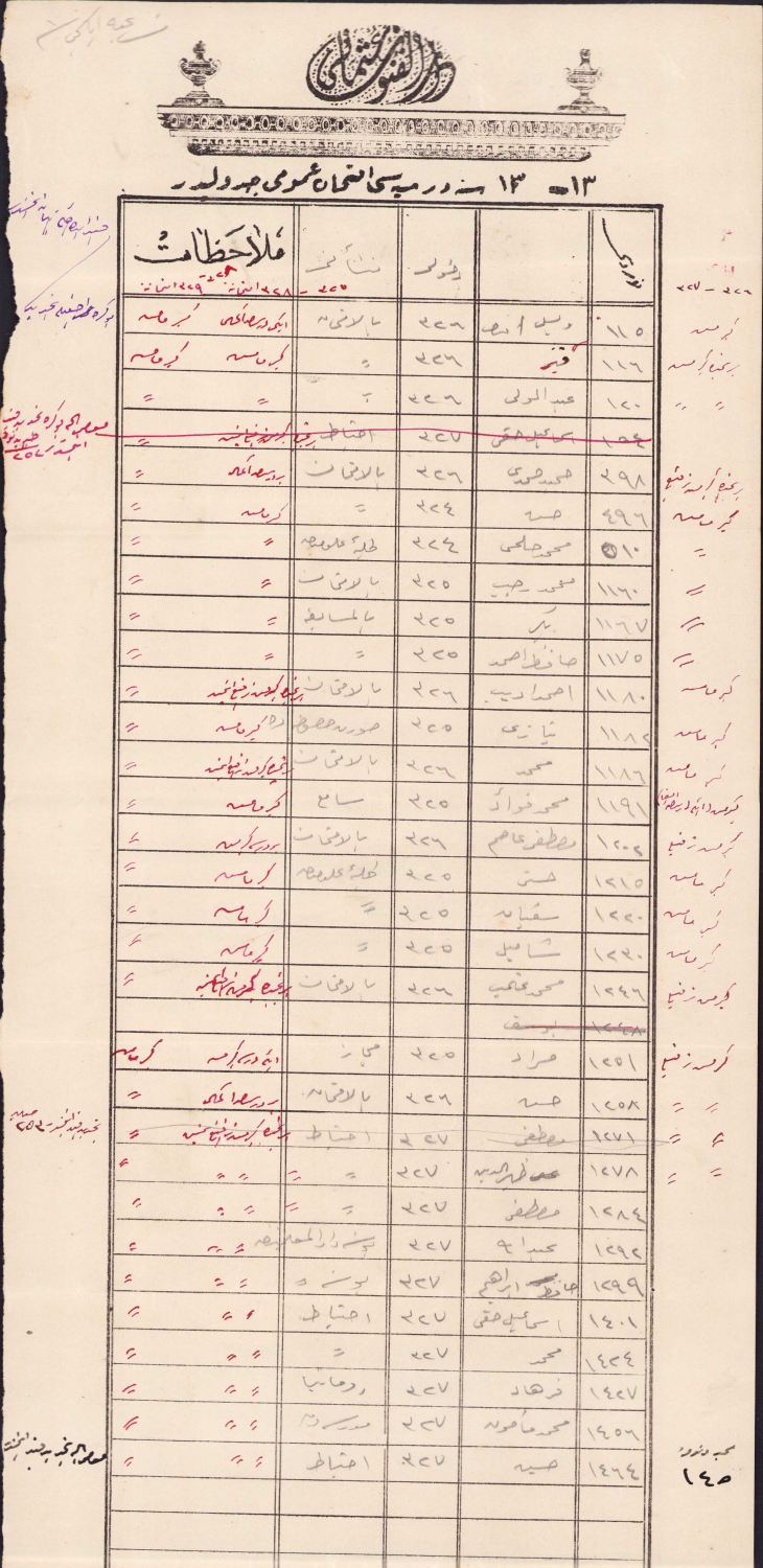 Osmanlı Darülfünun Edebiyat Şubesi talebere ait not çizelgesi, 20x56 cm