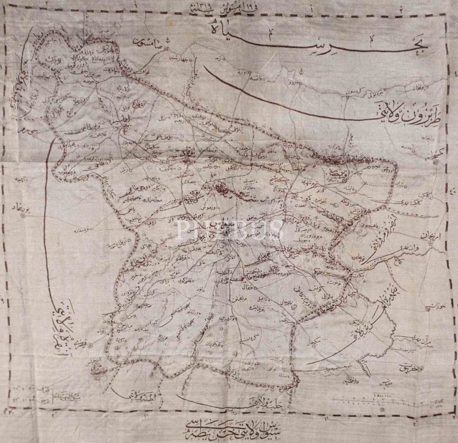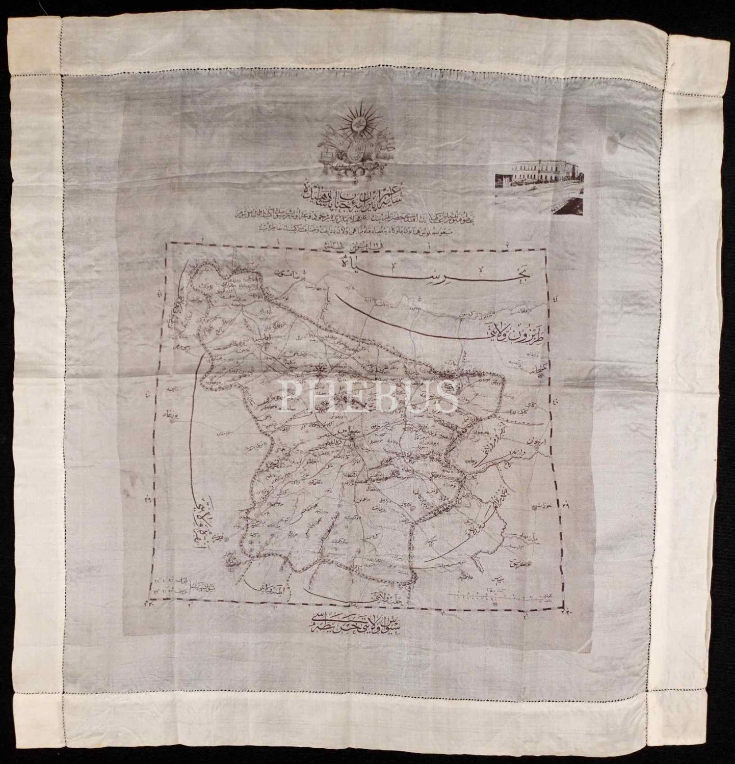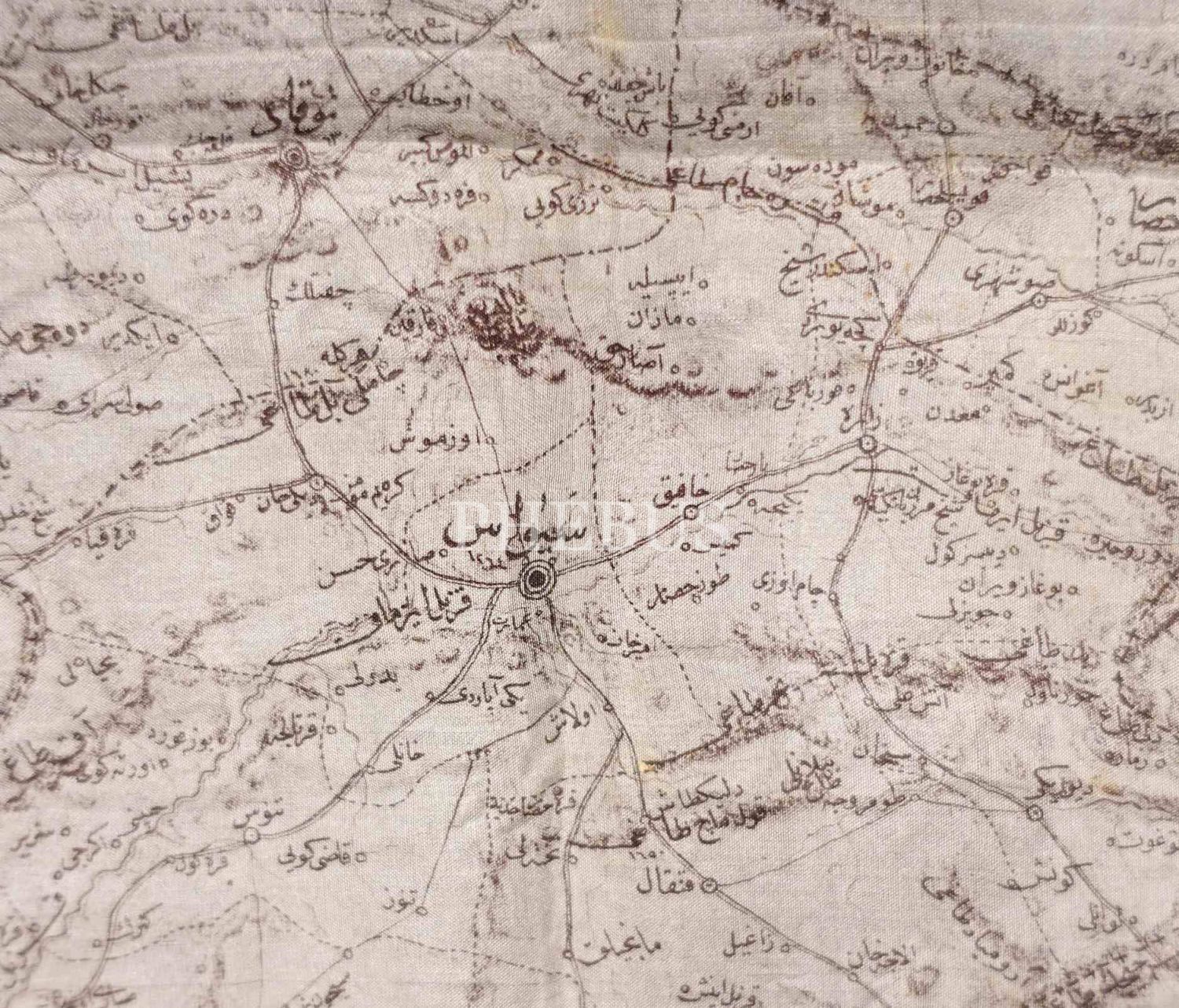 İpek mendil üzerinde Sivas Vilayeti haritası, 1319 tarihli, 41x43 cm