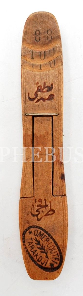 Osmanlı ve Latin harfleriyle "Ömer Lütfi Tarakçı" yazılı ahşap kuyumcu terazisi, 2x11 cm
