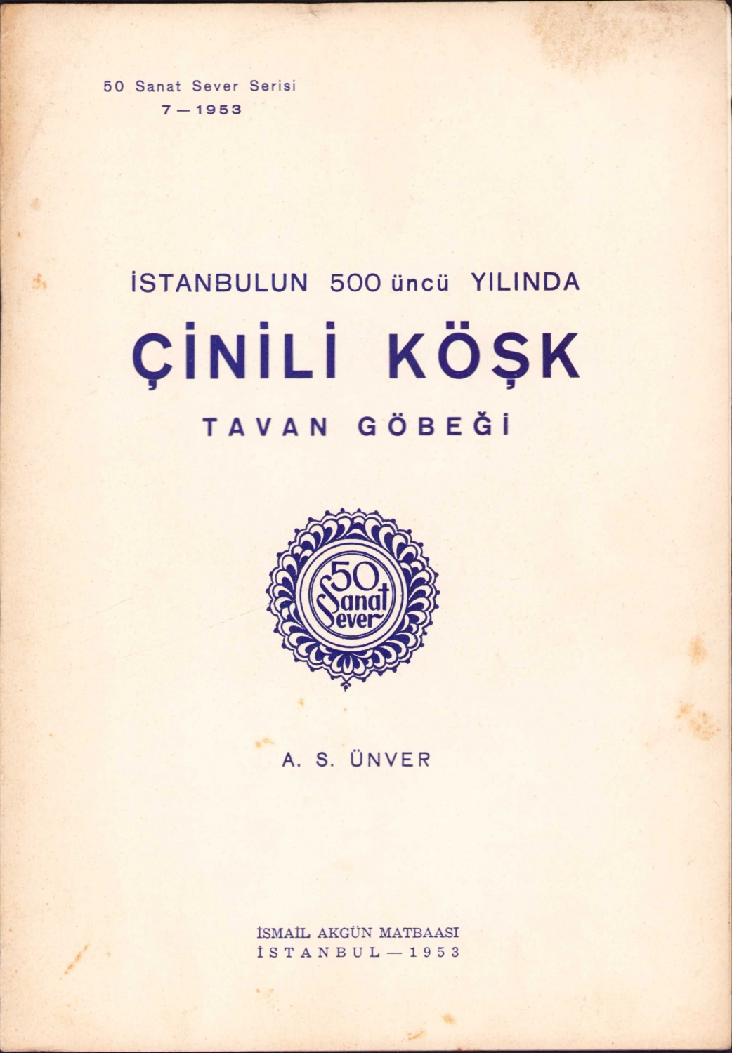 İstanbul'un 500 üncü Çinili Köşk Tavan Göbeği, A. Süheyl Ünver, İstanbul, 1953, 2 sayfa, 16x24 cm