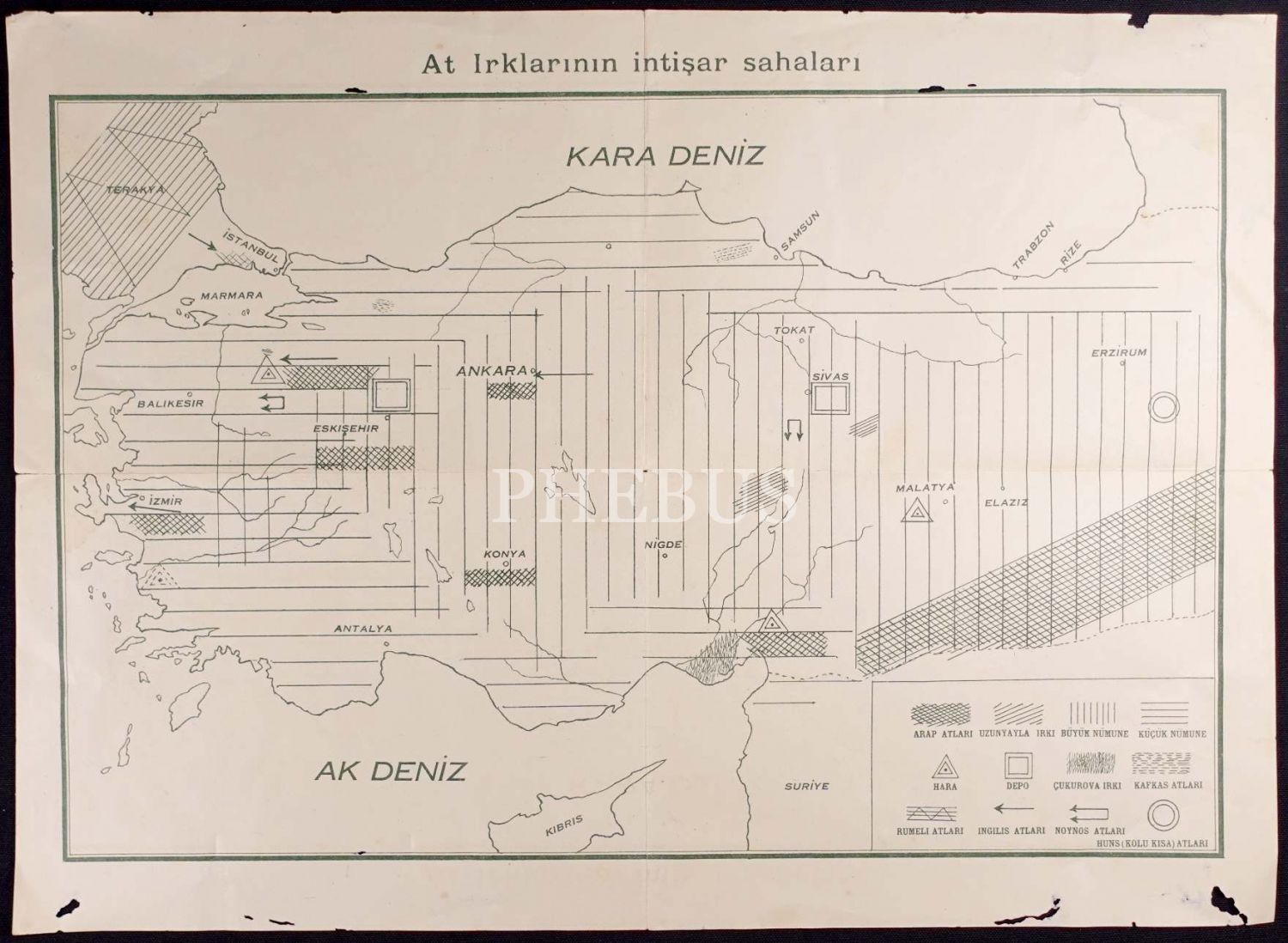 At ırklarının yayılma alanları haritası, 37x51 cm