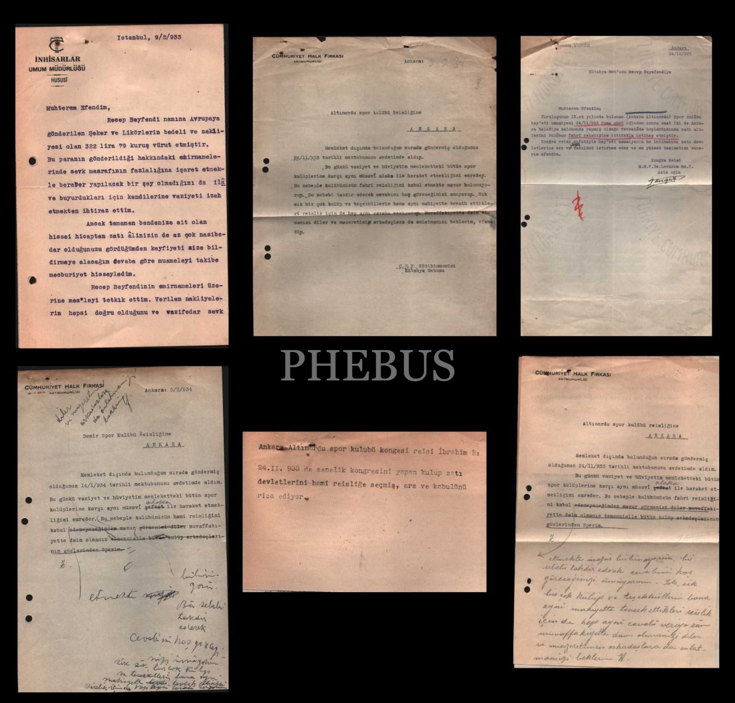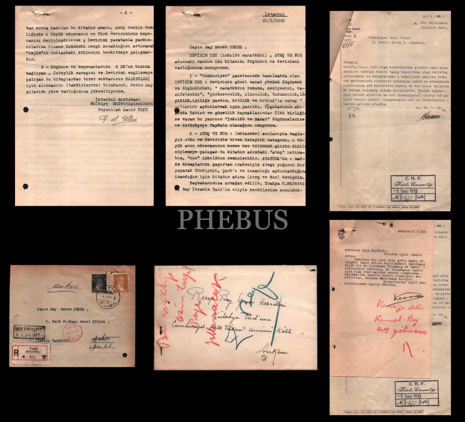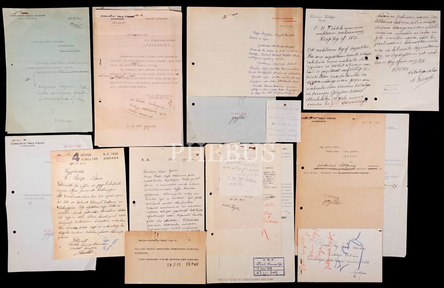 Cumhuriyet Halk Fırkası Genel Sekreteri ve Başbakan Recep Peker´in terekesinden; Peker´in çeşitli kişilerle gerçekleştirdiği yazışmalar ve diğer evraklar, çeşitli boyutlarda