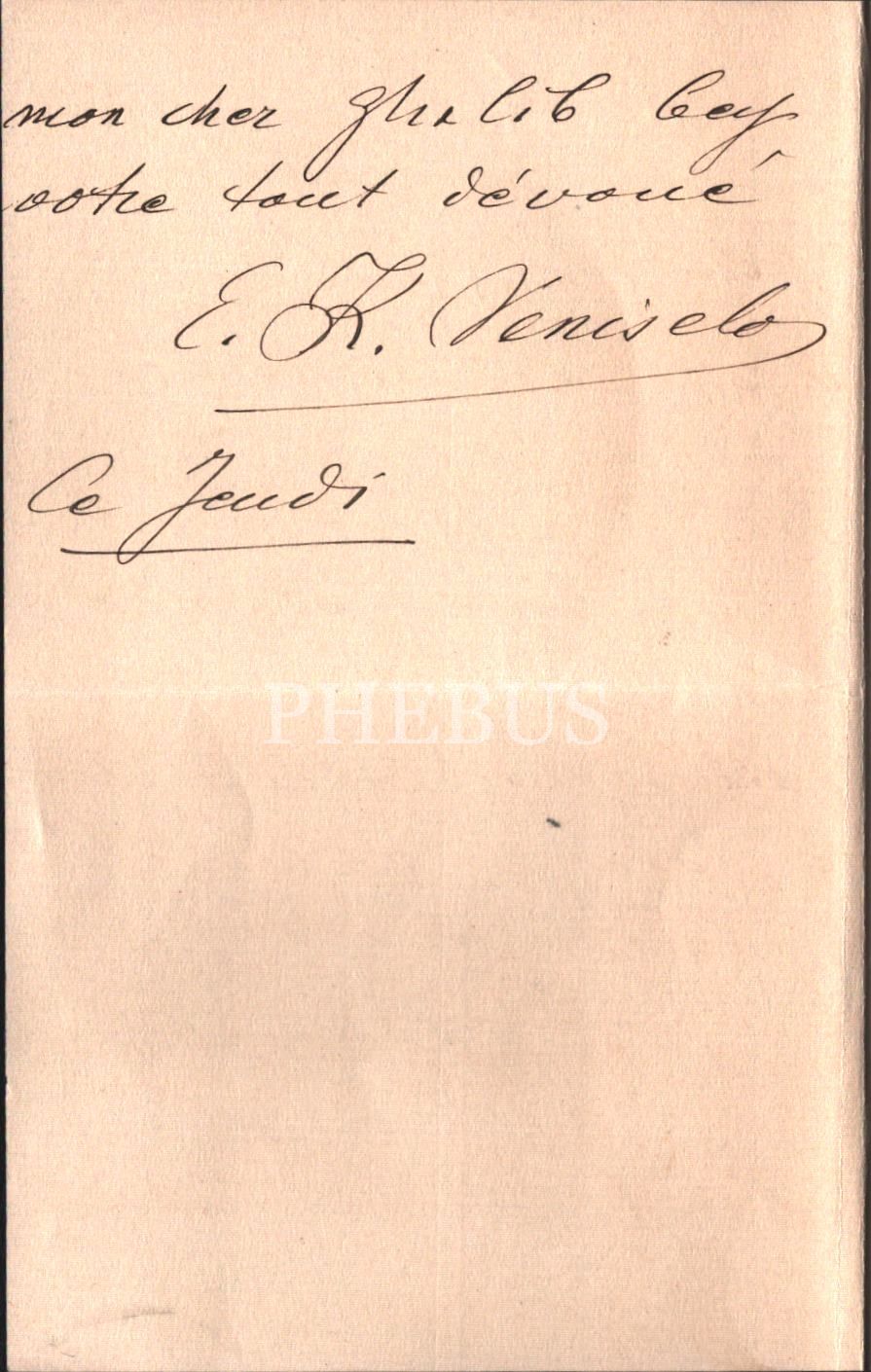 E. Kyriakos Venizelos´un Diplomat Galib Kemali Söylemezoğlu´na gönderdiği 1913 tarihli mektup, 11x18 cm