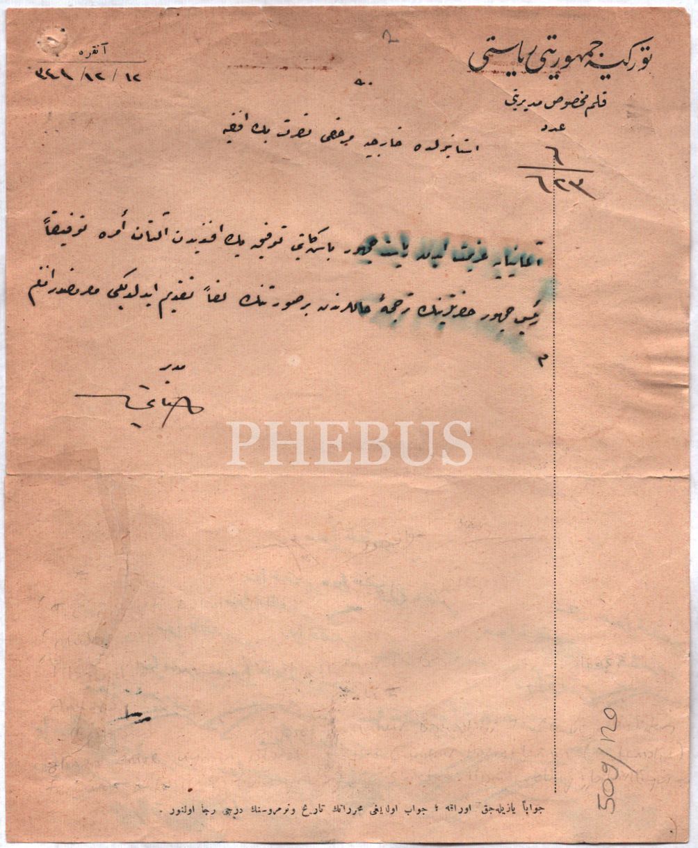 Türkiye Cumhuriyeti Riyaseti antetli 12.12.341 tarihli belge!