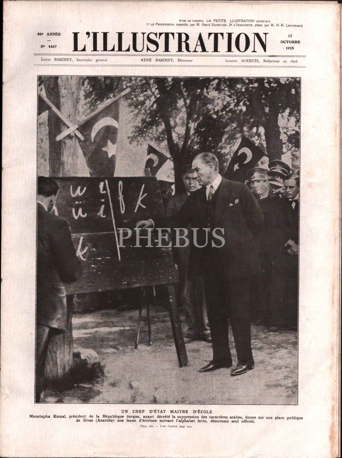 L´Illustration dergisinin Başöğretmen Atatürk kapaklı sayısı, 13 Ekim 1928, 29x39 cm
