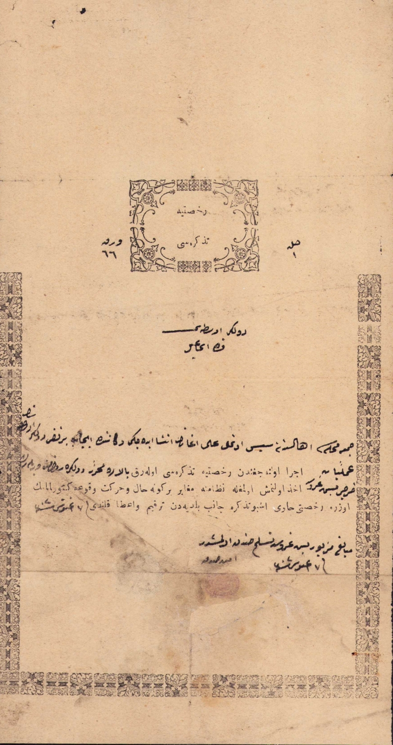 Osmanlı Dülger Dükkanına ait Ruhsatiye Tezkeresi, 1302 tarihli, 15x28 cm