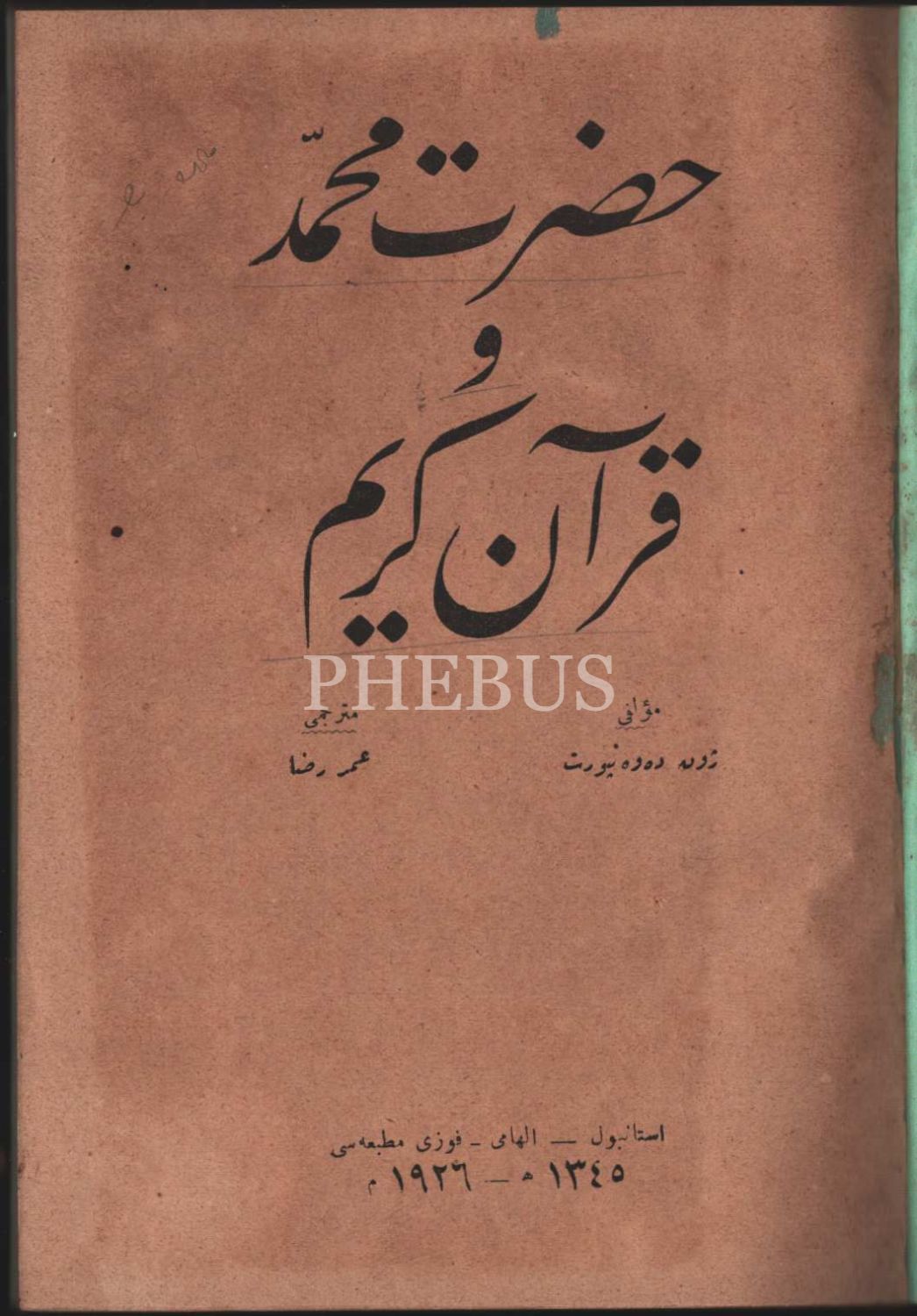 İslam tarihi: HAZRET-İ MUHAMMED VE KUR´ÂN-I KERÎM, John Davenport, çev. Ömer Rıza, İlhami-Fevzi Matbaası, İstanbul 1926, 170 s., 14x20 cm