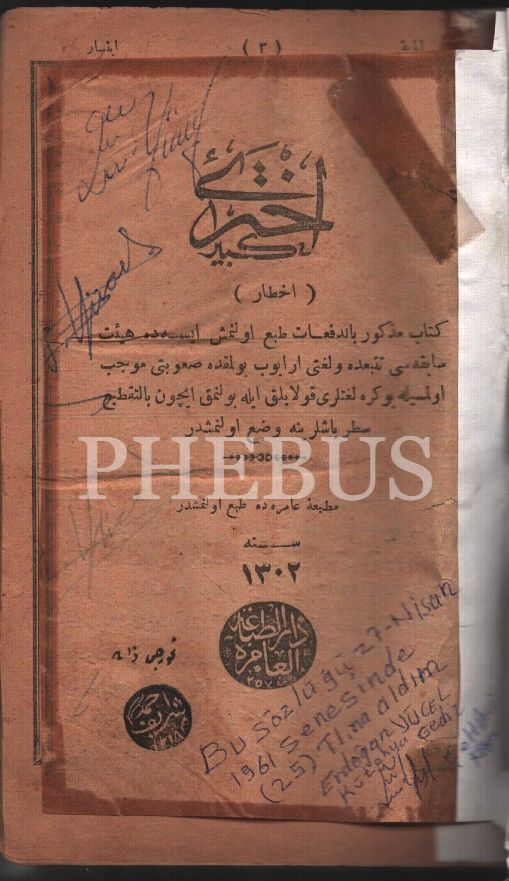 Sözlük: AHTERÎ-İ KEBÎR, Amire Matbaası, 1302, 1198 s., 12x19 cm