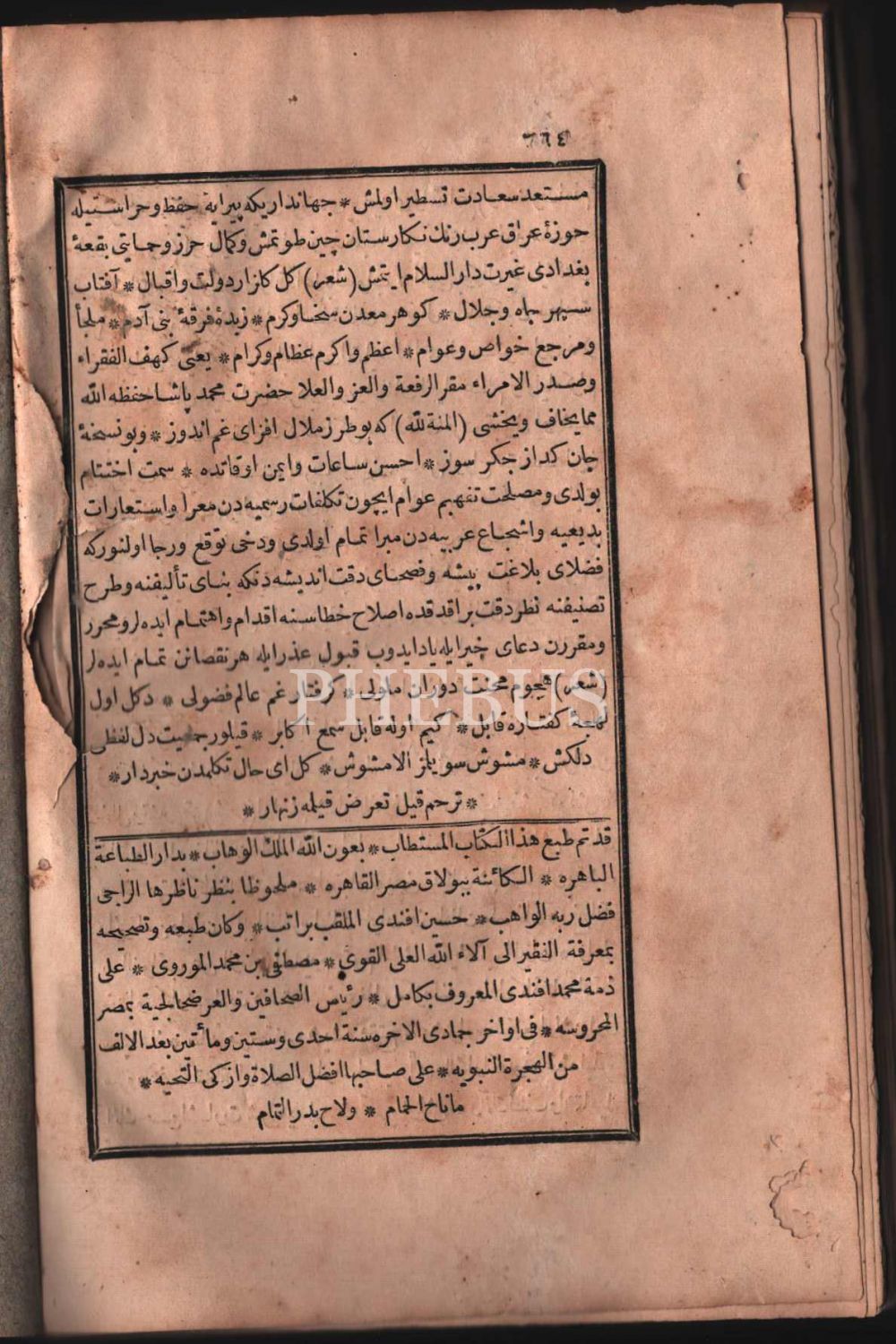 Edebiyat tarihi: HADÎKATÜ´S-SUADÂ, Fuzulî, Bulak Matbaası/Mısır 1261, 364 s., 14x22 cm, sırtı ayrık haliyle