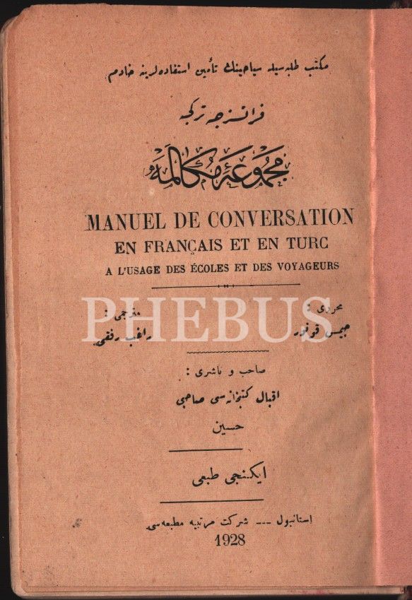 Dilbilgisi: FRANSIZCA-TÜRKÇE MECMÛA-İ MÜKÂLEME [Konuşma], James Conore, çev. Ragıb Rıfkı, Şirket-i Mürettibiye Matbaası, İstanbul 1928, 487 s., 12x18 cm