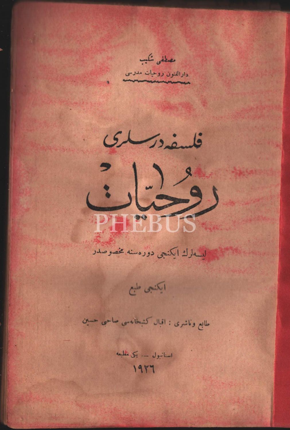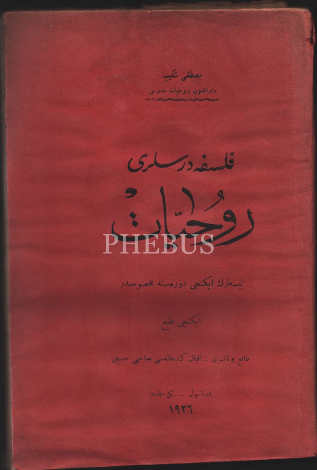 Eğitim tarihi: Felsefe Dersleri: RÛHİYYÂT, Mustafa Şekib [Tunç], Yeni Matbaa, İstanbul 1926, 350 s., 15x22 cm