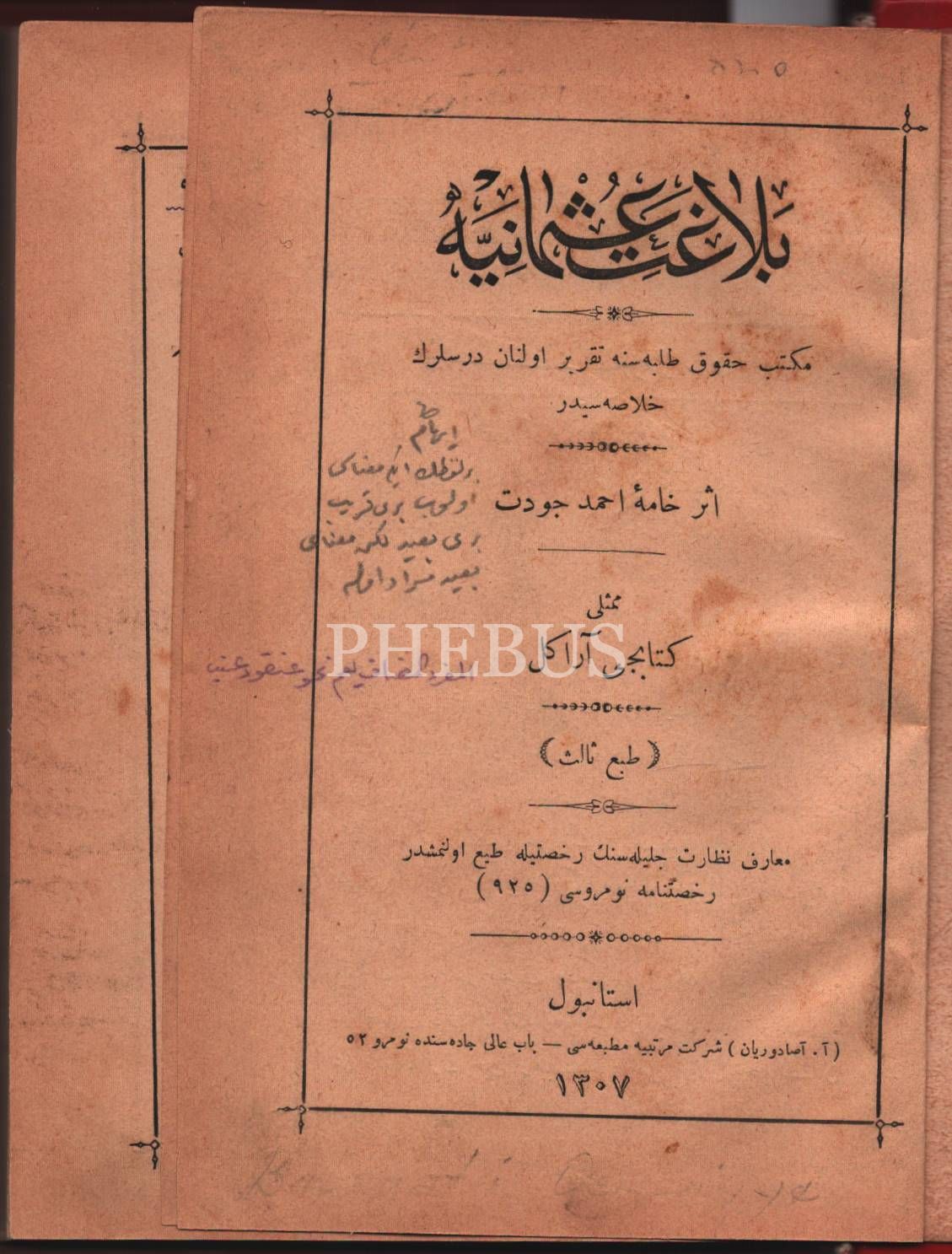 Eğitim tarihi: BELÂGAT-İ OSMÂNİYYE, Ahmed Cevdet, A. Asaduryan Şirket-i Mürettibiye Matbaası, İstanbul 1307, 205 s., 13x19 cm