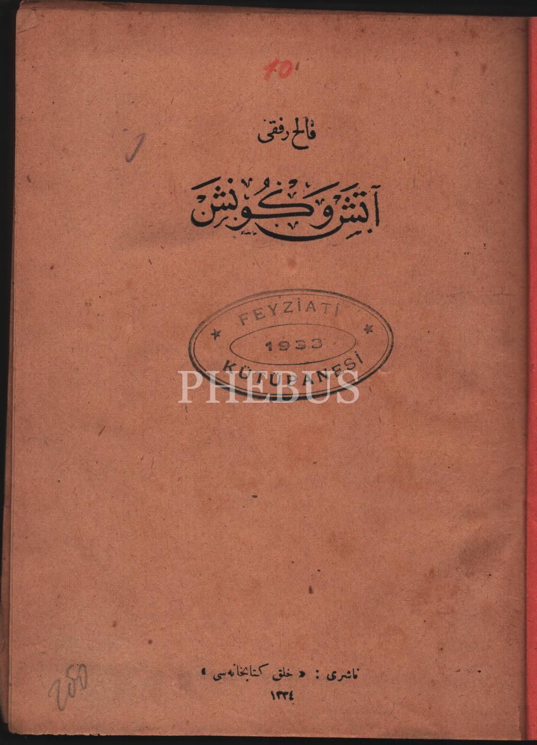Edebiyat tarihi: ATEŞ VE GÜNEŞ, Falih Rıfkı [Atay], Halk Kitabhanesi, 1334, 182 s., 14x18 cm