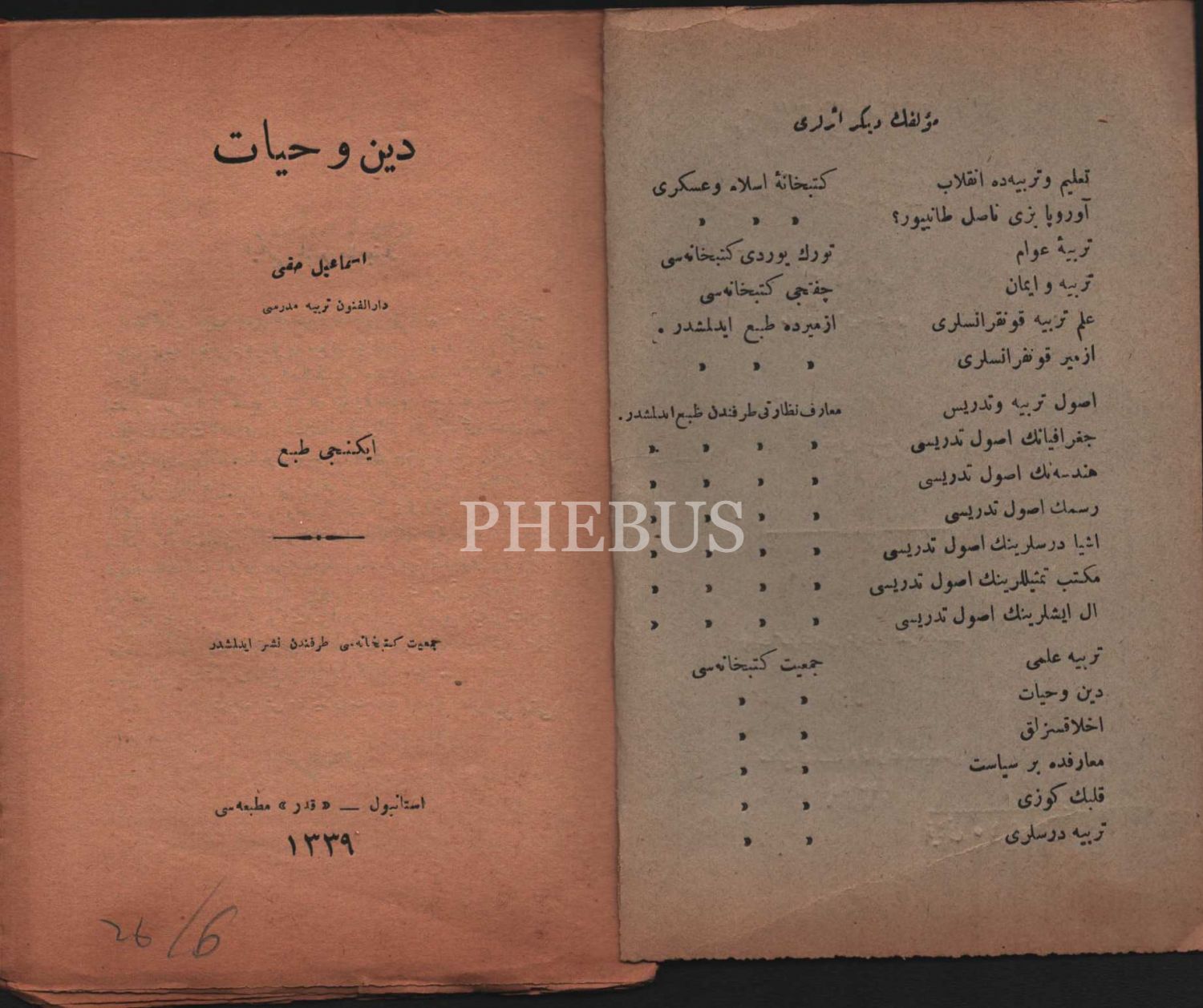 DÎN VE HAYÂT, İsmail Hakkı [Baltacıoğlu], Kader Matbaası, İstanbul 1339, 50 s., 13x19 cm