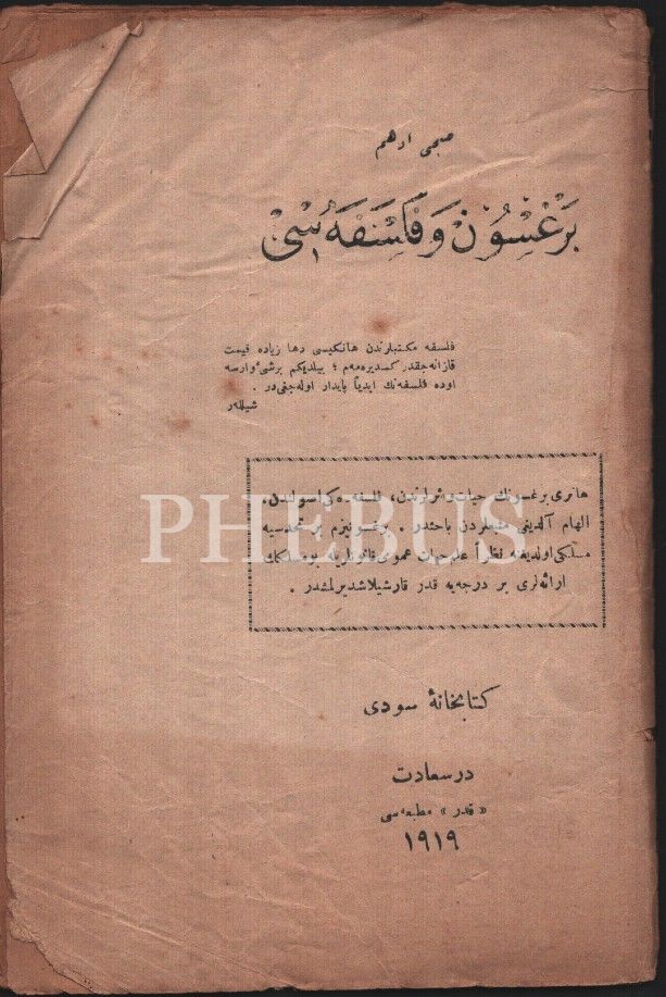 Düşünce tarihi: BERGSON VE FELSEFESİ, Subhi Edhem, Kader Matbaası, İstanbul 1919, 59 s., 14x20 cm