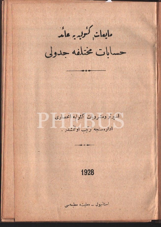 Bilim tarihi: MÂYİÂT-I KÜÛLİYYEYE ÂİD HESÂBÂT-I MUHTELİFE CEDVELİ, Milliyet Matbaası, İstanbul 1928, 41 s., 14x20 cm